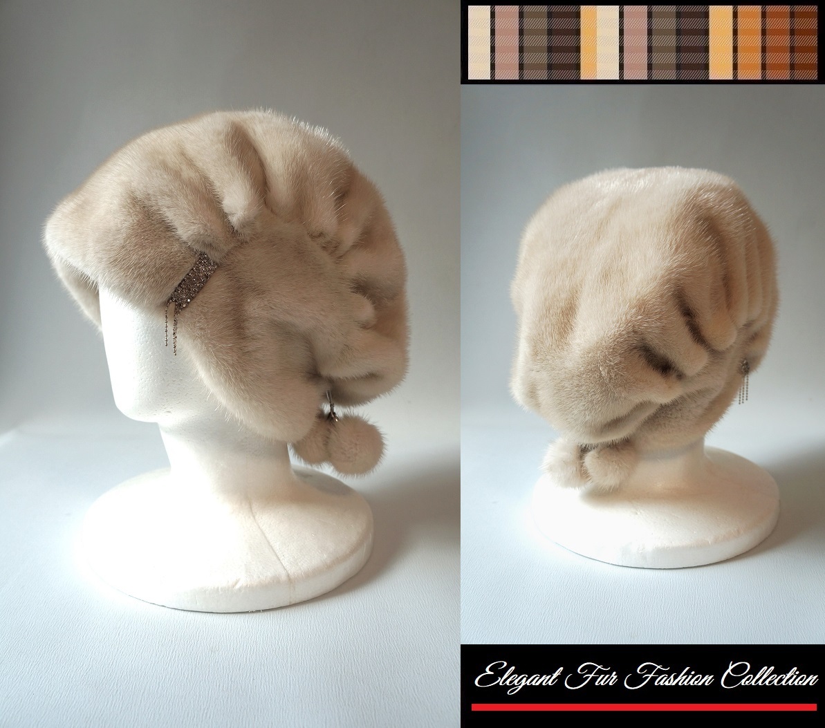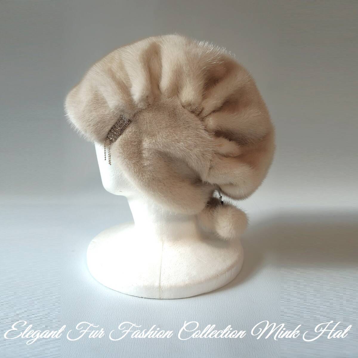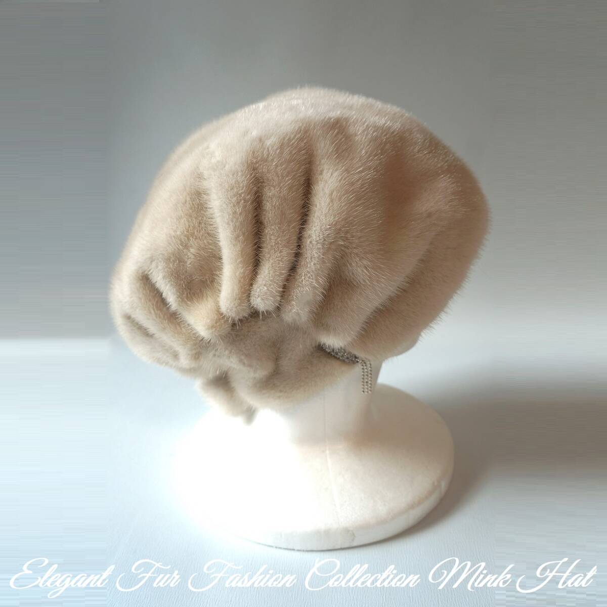 気品を美しく纏う"大人"を彩る逸品☆素敵なパールベージュミンク帽子 リアルファー帽子 耳の保護 冬用 暖か 毛皮帽子