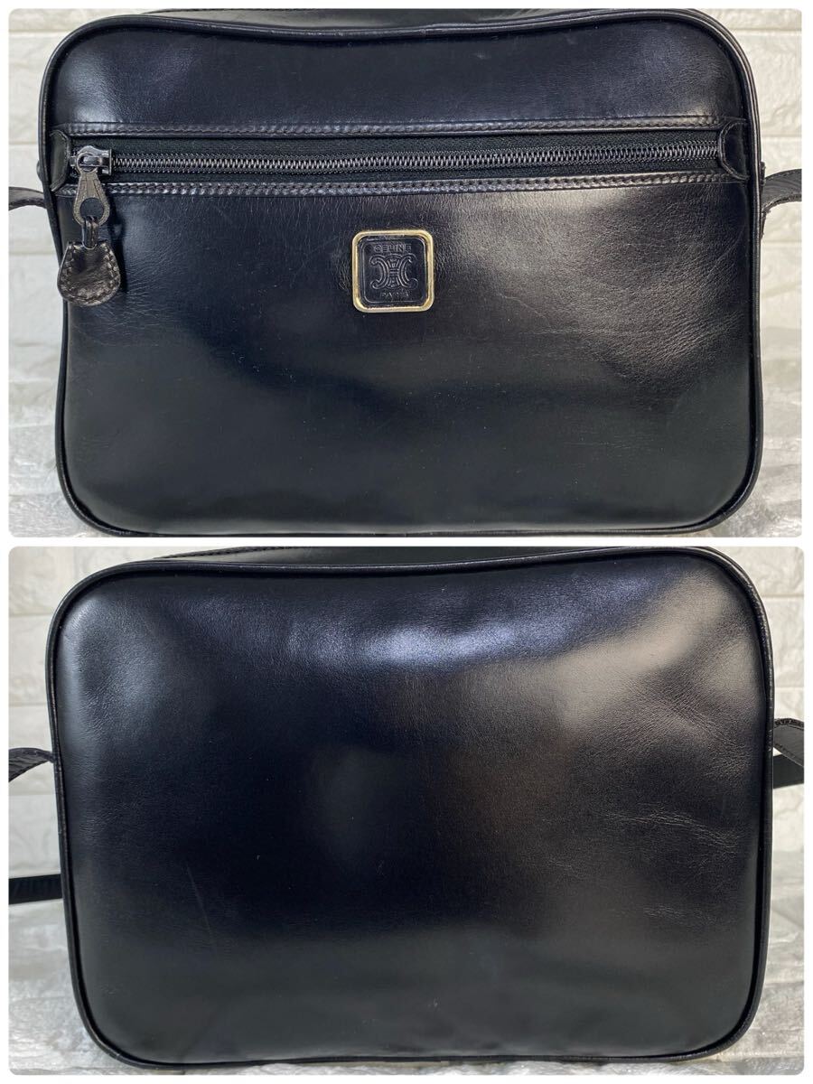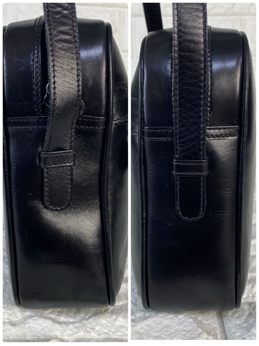 オールドセリーヌ ショルダーバッグ カメラバッグ ブラック トリオンフ レザー 本革 ロゴ ゴールド金具 斜め掛け