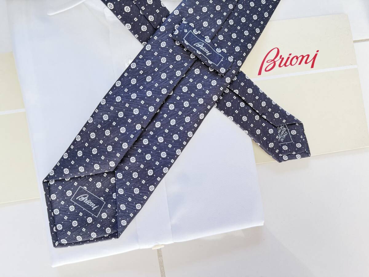 ご覧くださりどうも有り難うございます、定番であるBrioni ブリオーニのネイビー のシルク フローラル小紋タイ 新品未使用、未着用です。ネイビータイは何本あってもいいですね。