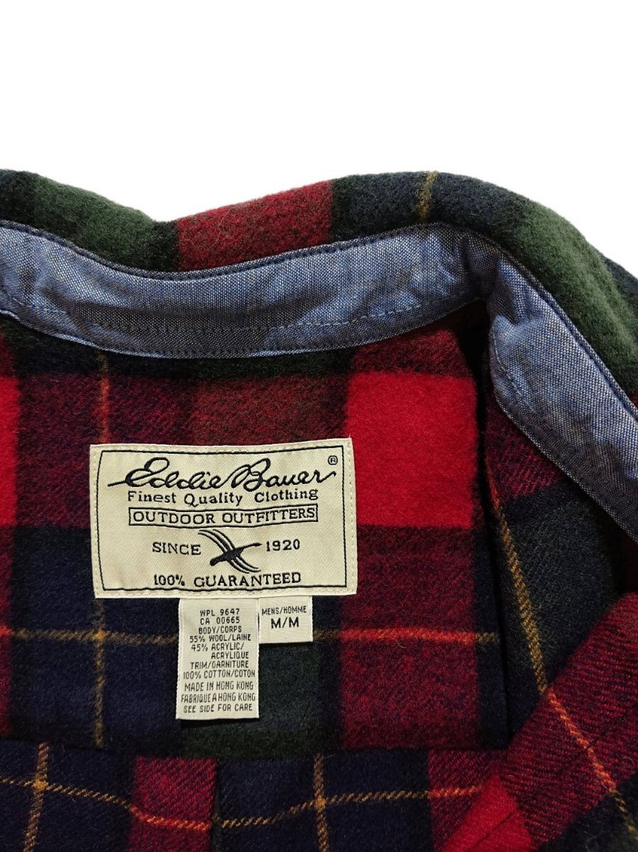 ご覧いただきありがとうございます。旬なアイテムから、レアなヴィンテージまで、幅広く出品しております。お時間がありましたら他の出品物もご覧ください。《商品説明》1980s / 1990s【Eddie Bauer】 のボタンダウン・ウールシャツです。生産国は、香港製。ウール55%+アクリル45%の混紡素材で、チクチク感もほとんどありません。CPOシャツと同等か若干薄手の生地感になります。お探しの方は是非この機会にご検討ください。《サイズ》表記 M肩幅約53cm身幅約65cm着丈約81cm袖丈約60cm《状態》Dead Stock(当時の未使用品)で購入後、数回着用いたしました。毛玉もなく極美品の状態です。購入時から襟裏地・袖口裏地にシミがありますが、着用していて気になる感じではなく、問題ないと思います。《発送方法》ゆうパック(80サイズ)《発送までの日数》決済通知をいただいてから48時間以内を予定しております。《お支払方法》Yahoo!かんたん決済《その他》商品落札後48時間以内に決済をお願いいたします。トラブル防止のため少しでも気になることがありましたら “落札前” に質問からお問い合わせください。落札後はノークレーム・ノーリターンでお願いいたします。
