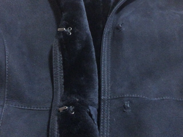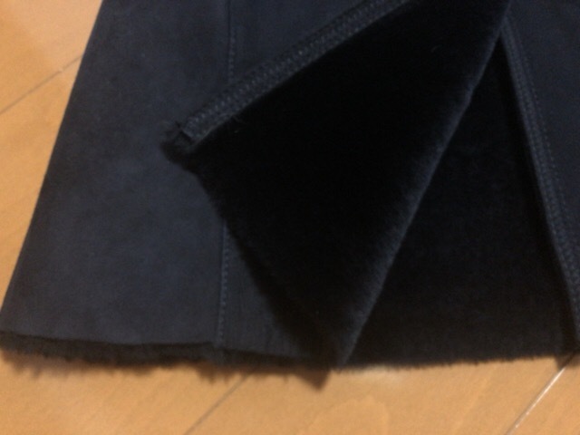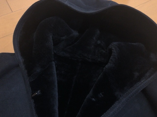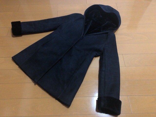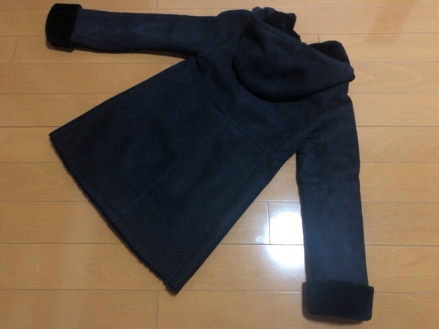 7万円★本革 羊毛 リアル ムートン ネイビー コート フード 紺 ファー 本物 ムートンジャケット