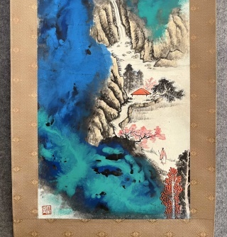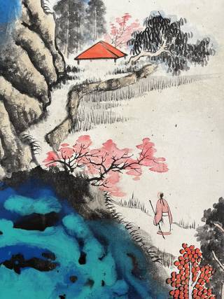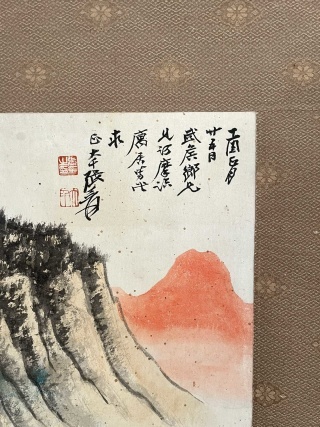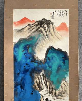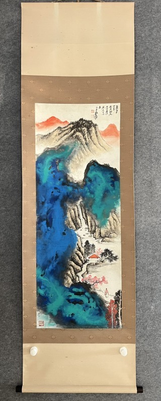 『三希堂』 中国画 古美術 [張大千山水図] 掛け軸 真筆逸品 肉筆保証 中心尺寸108.5X41cm ABC715