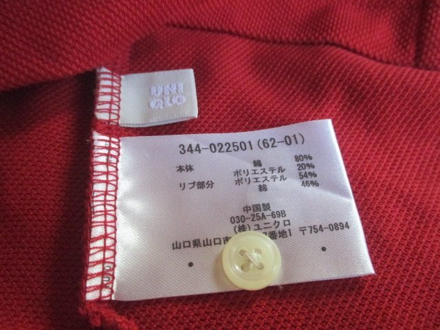 Z6958送料無料【UNIQLO ユニクロ ポロシャツ 半袖:M】 美品 ビジネスクールビズ ★エンジ |