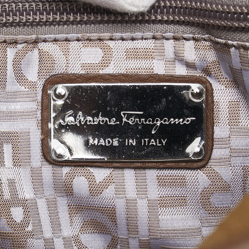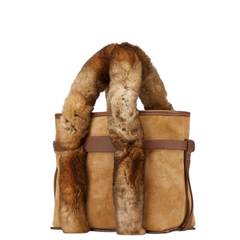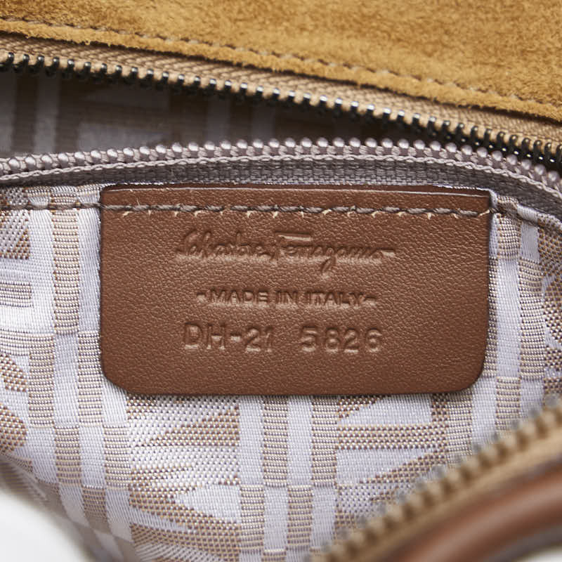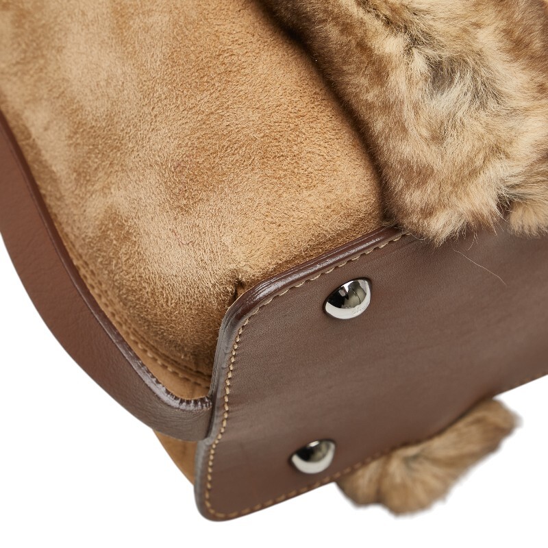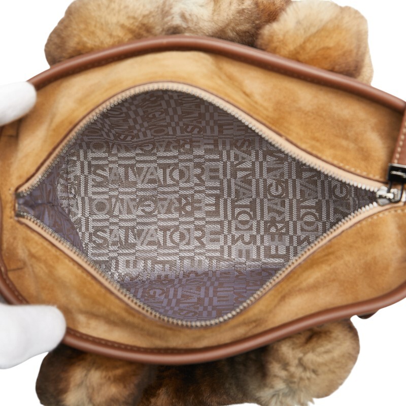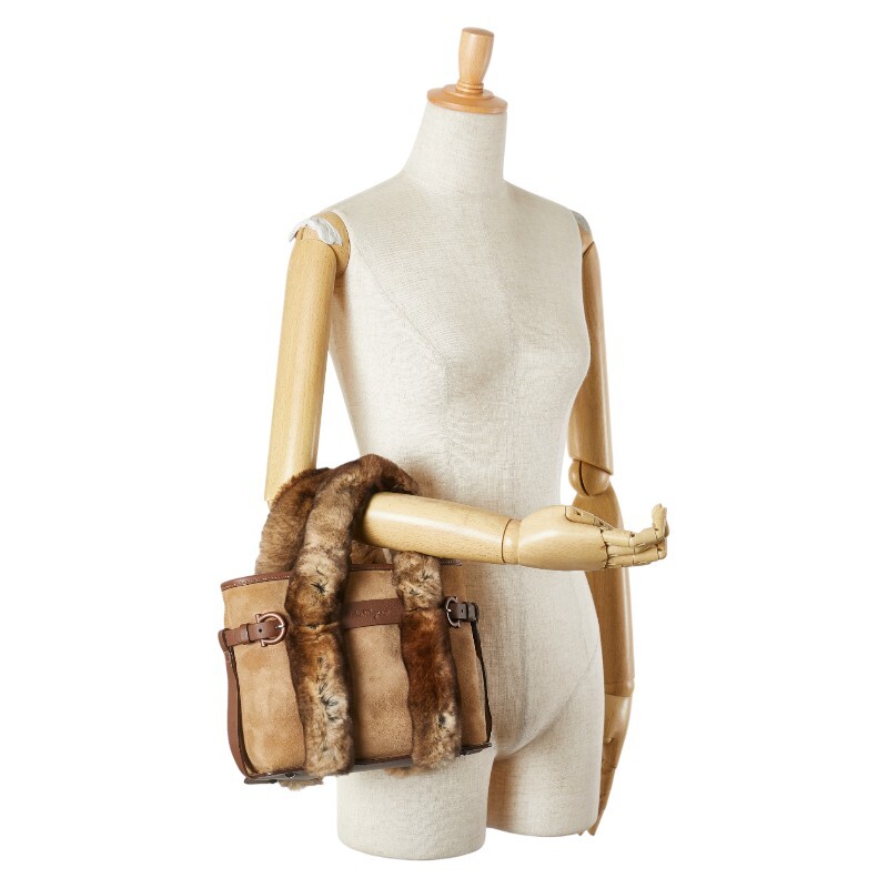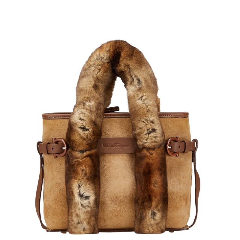 サルヴァトーレフェラガモ ハンドバッグ ベージュ ブラウン ファー レザー スエード レディース Salvatore Ferragamo 【中古】