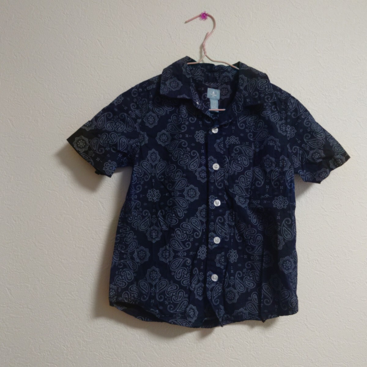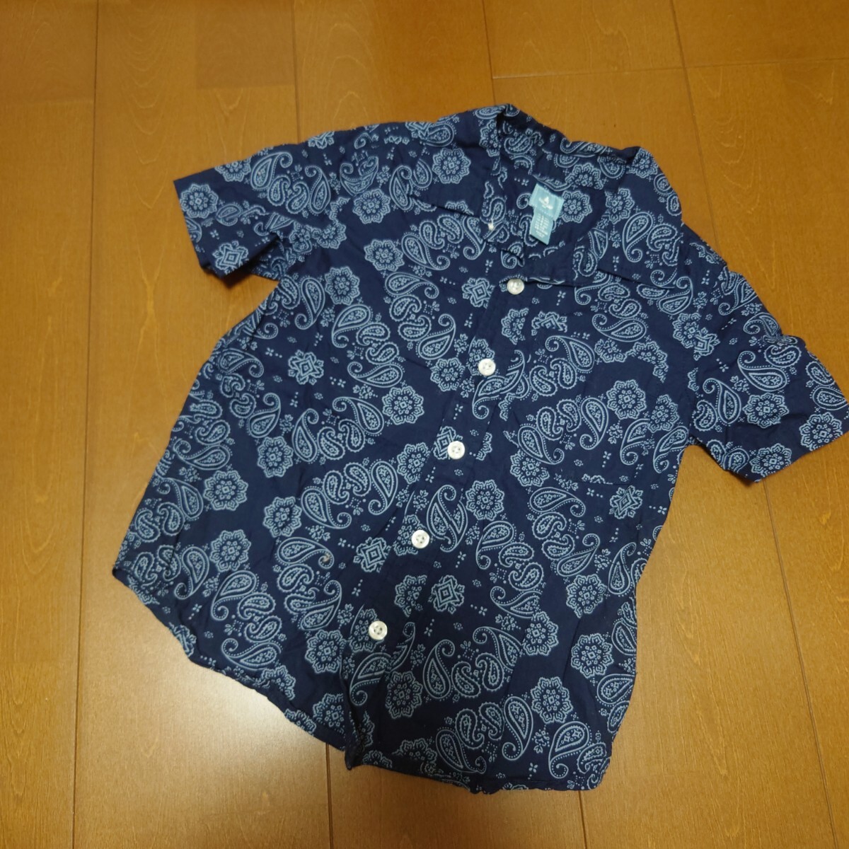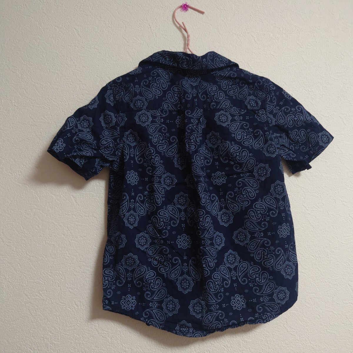 ネイビーのペイズリー柄半袖シャツ、110cmサイズのコットン製。