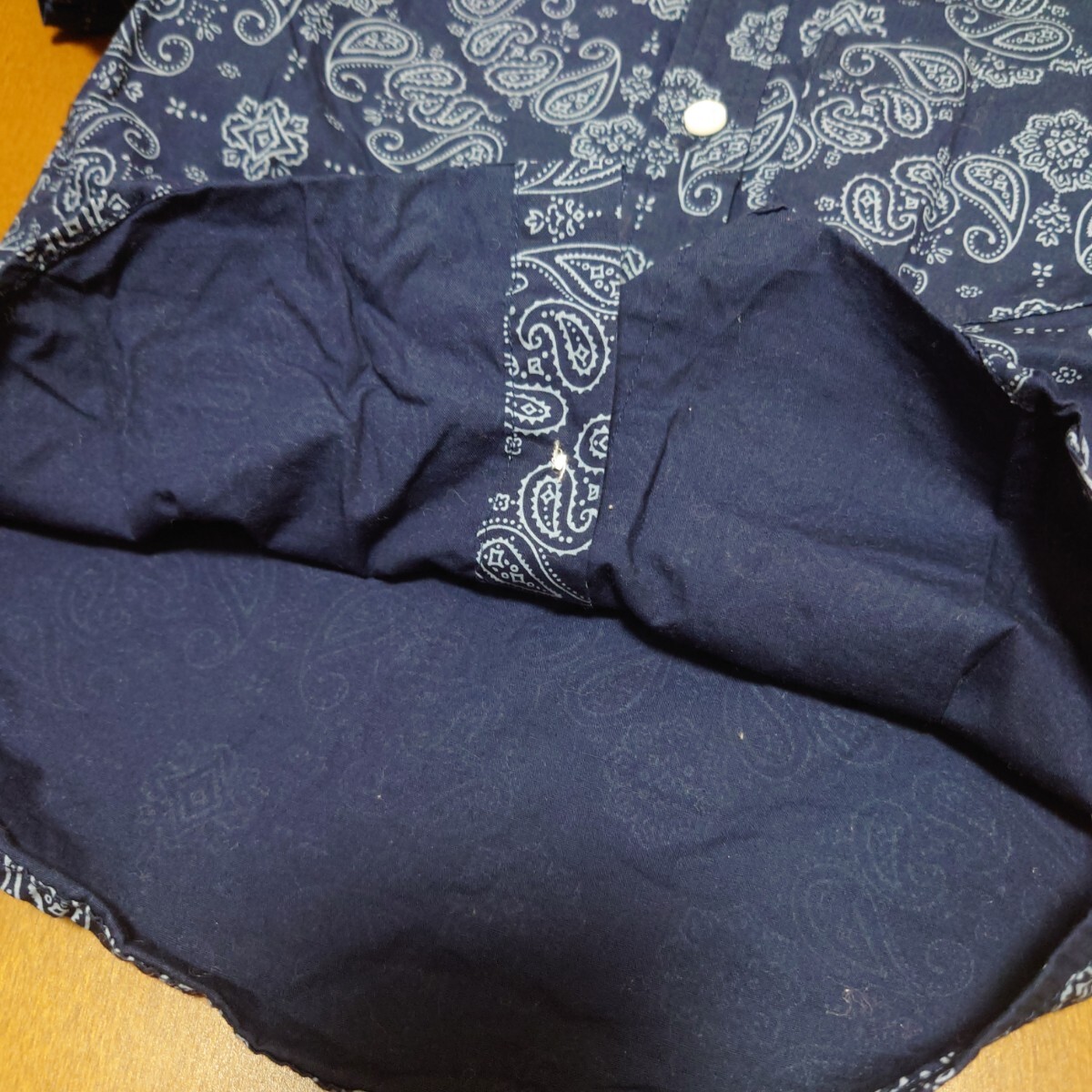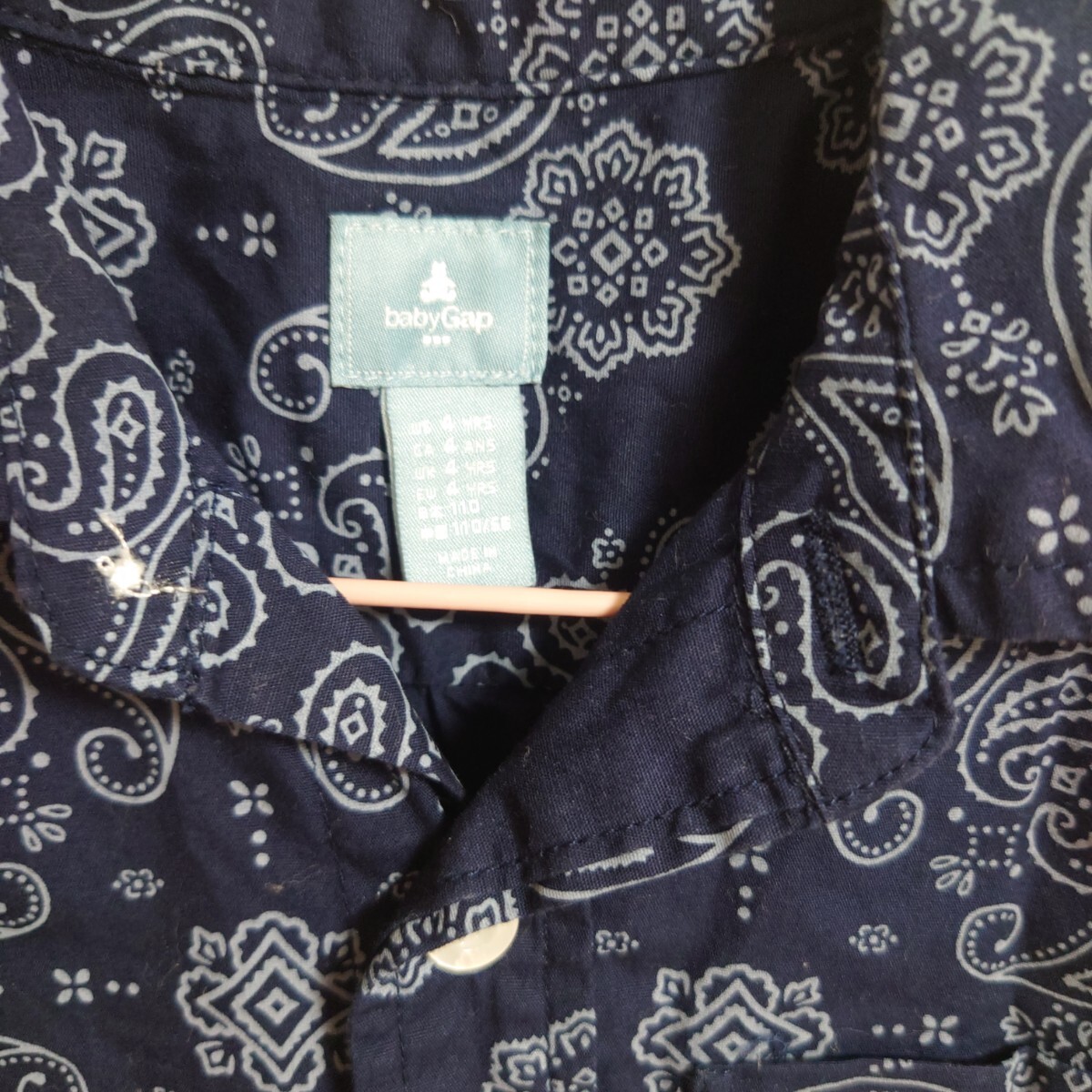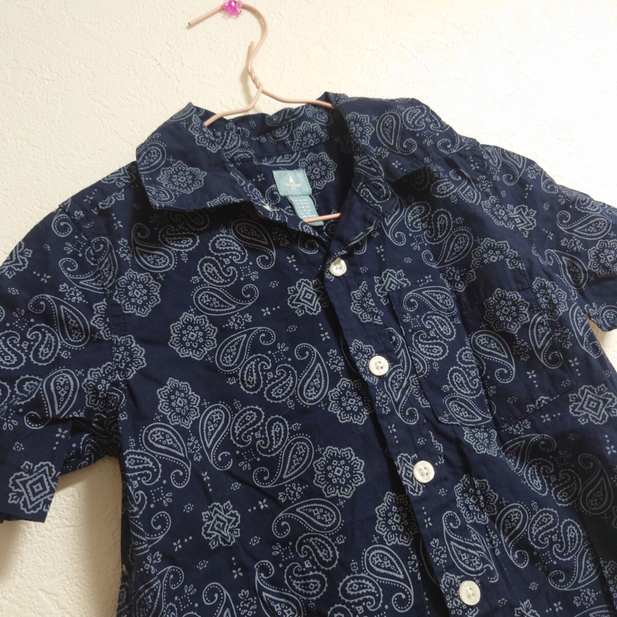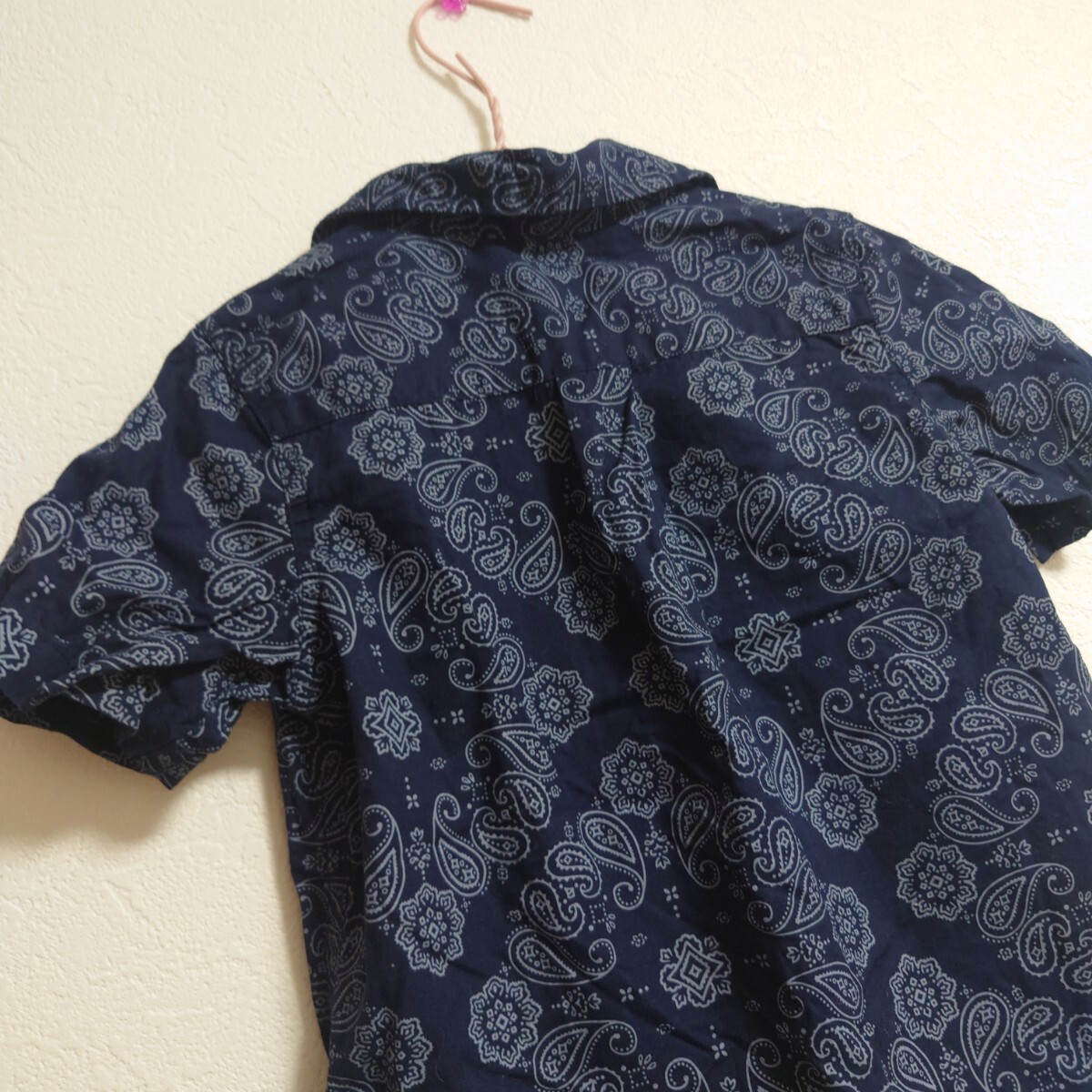 ネイビーのペイズリー柄半袖シャツ、110cmサイズのコットン製。