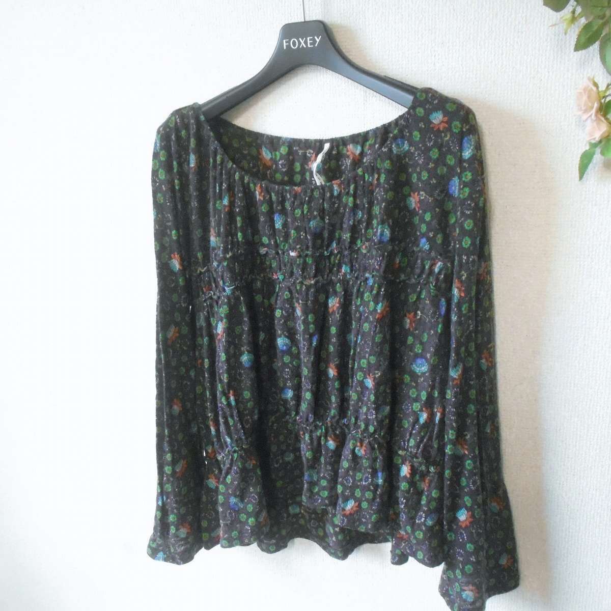 【ポイント】スナオクワハラさんの薄手セーターになります。お色は濃い紫系のベースカラーで秋冬を中心に着ていただけるお品です。全体にお花の柄が入ったとっても素敵なデザインです。