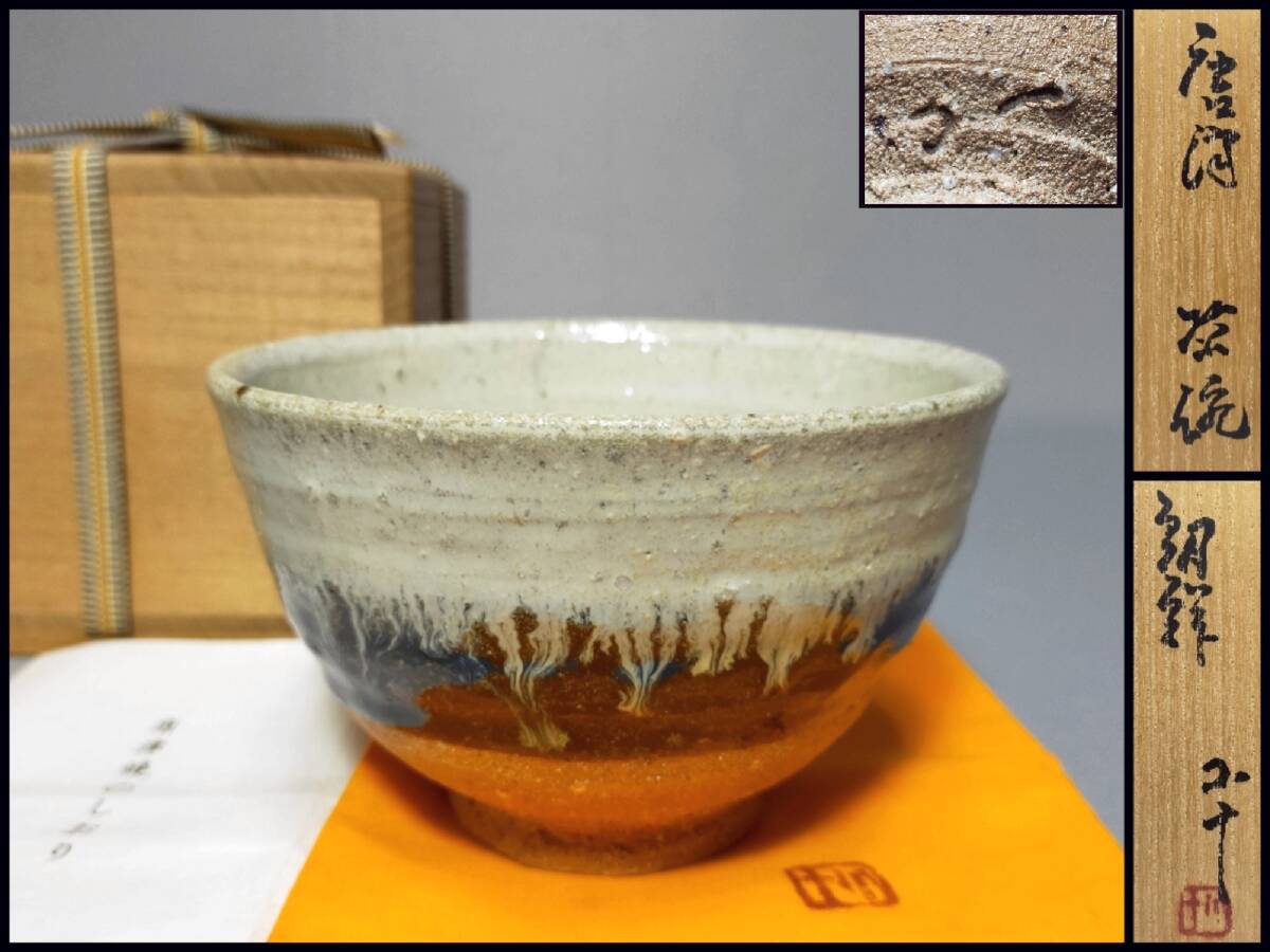 唐津焼 茶碗 名工 西岡小十 朝鮮唐津 栞・共布・共箱 茶道具/ 師:小山冨士夫 荒川豊蔵
