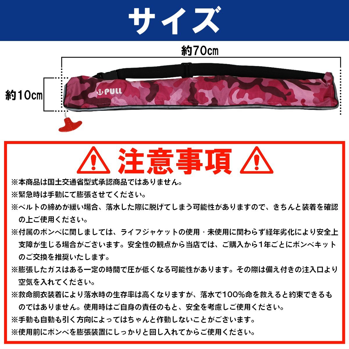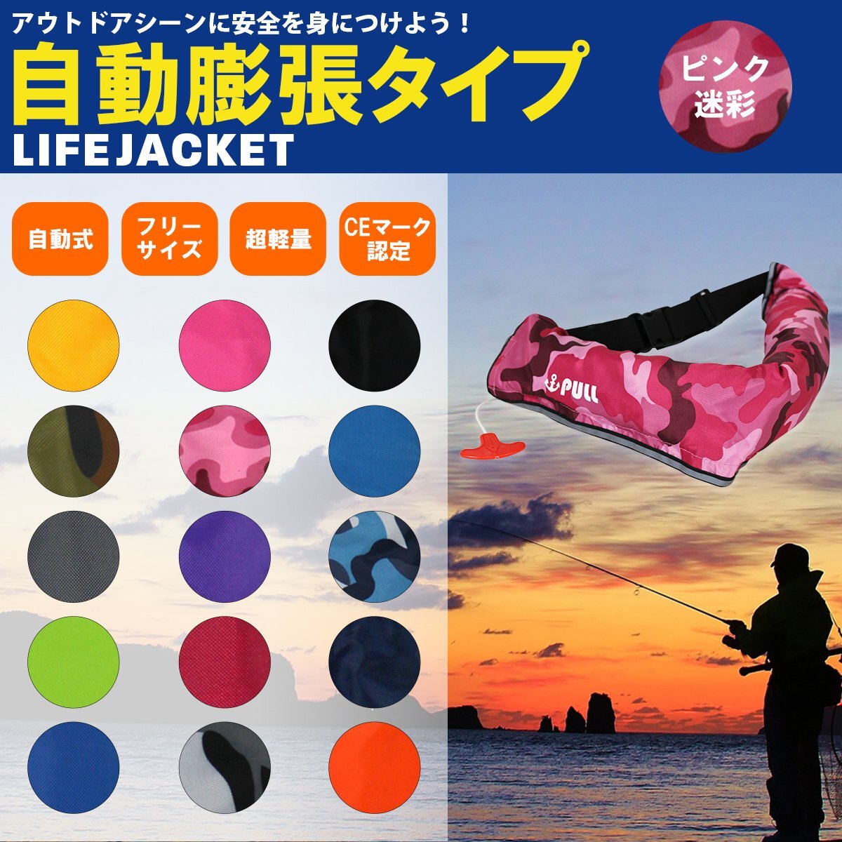 【新品即納】オリジナルカラー多数! ライフジャケット 自動膨張式 腰巻 腰 ベルト ウェスト固定式 迷彩ピンク※男女兼用!フリーサイズ
