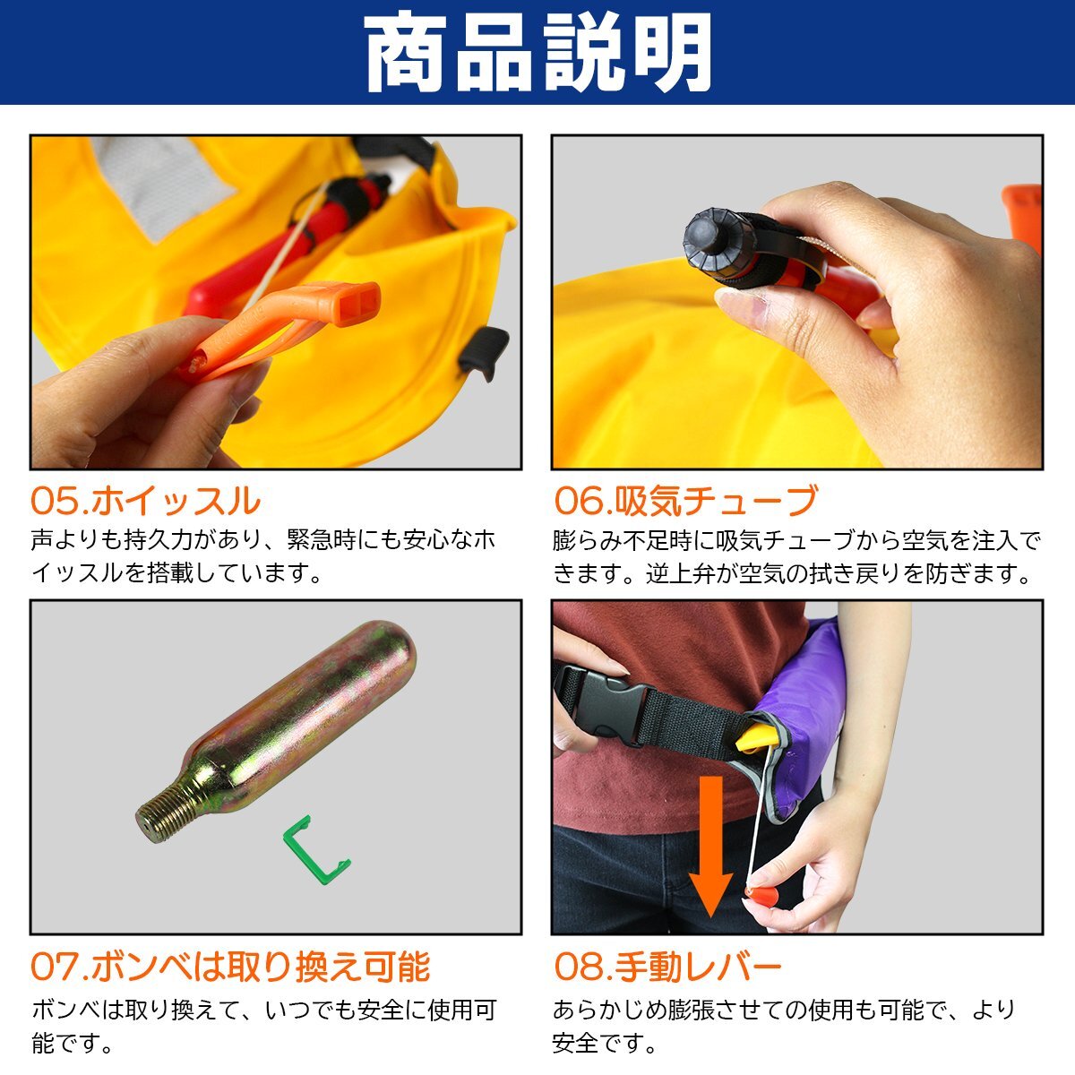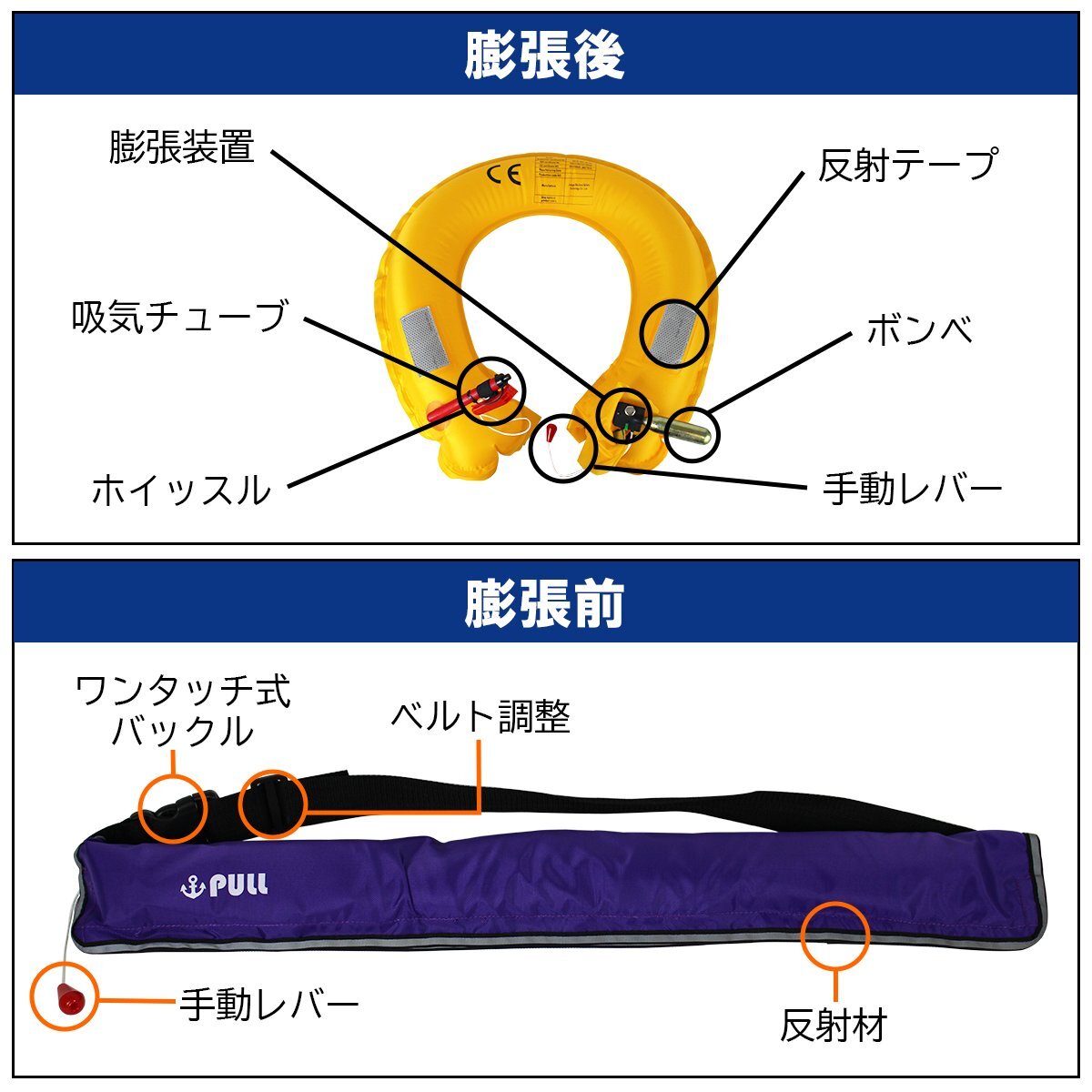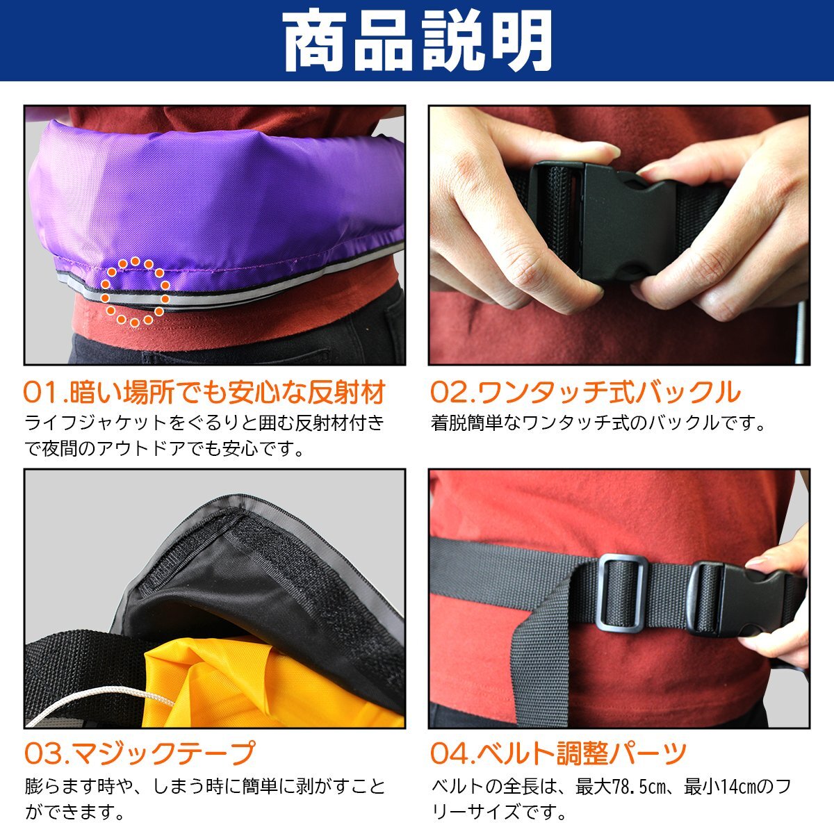 オリジナルカラー多数! ライフジャケット 手動膨張式 腰巻 腰 ベルトタイプ パープル 紫 ウェスト固定式 ※男女兼用! フリーサイズ