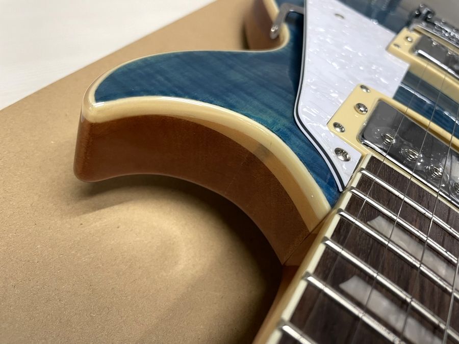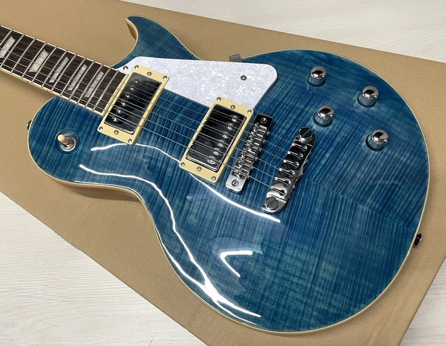 フレイムメイプルに鮮やかなカラーと、パーロイドピックガードを採用したモデル。