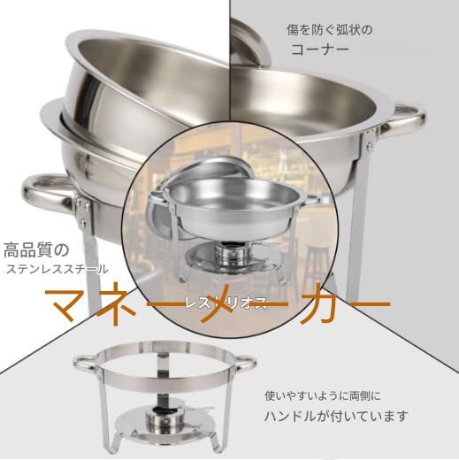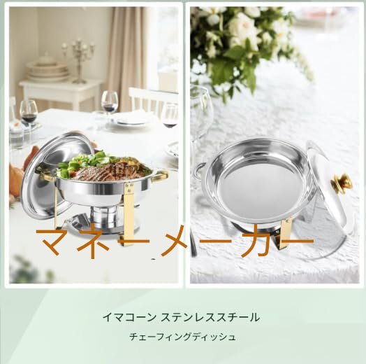 フェサーバー ビュッフェフードウォーマー ビュッフェセット ステンレスチェーフィングディッシュ スープ炒めタイプ 保温鍋 (1個-4.5L,シ