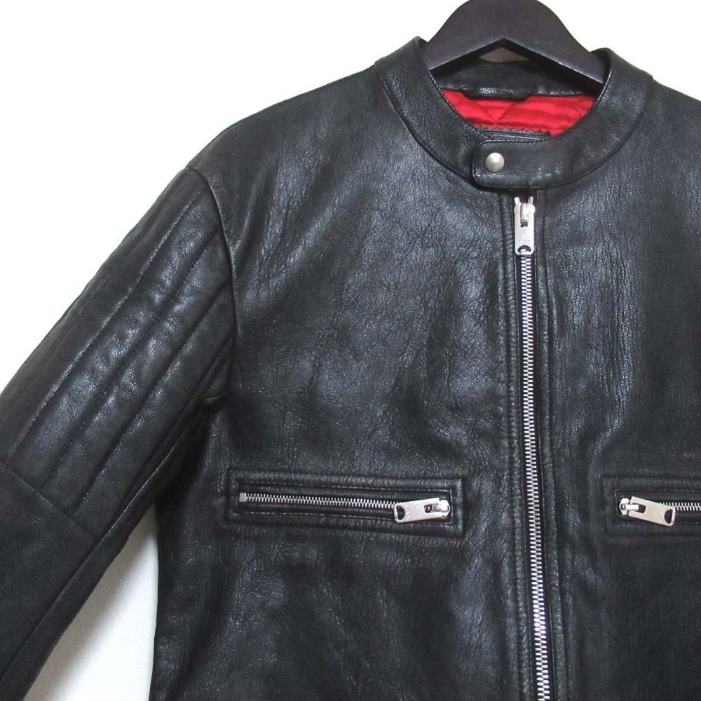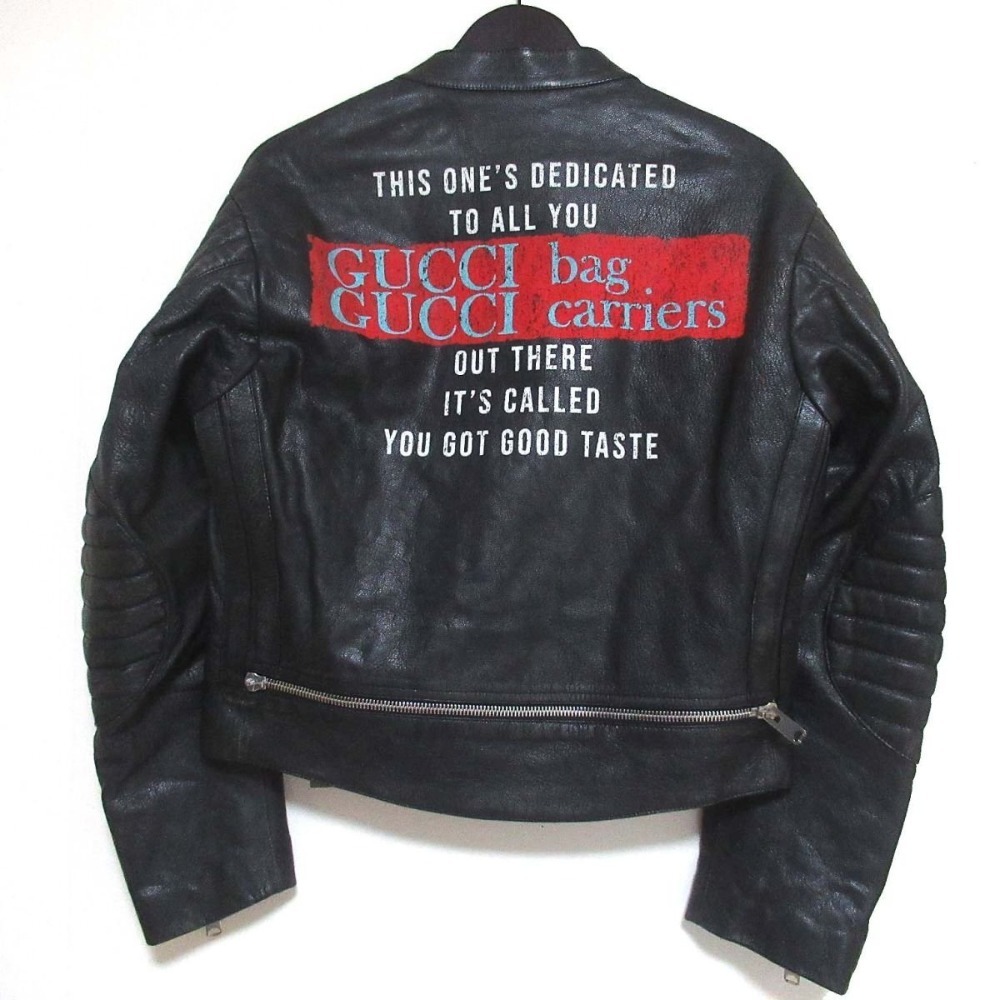 良品 GUCCI グッチ YOU GOT GOOD TASTE バックプリント レザー シングル パデッド ジャケット 665521 XNAO1 46 170/88A ブラック