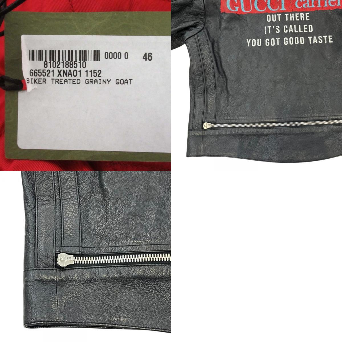 商品名:GUCCI グッチ YOU GOT GOOD TASTE バックプリント レザー シングル パデッド ジャケット 665521 XNAO1 46 170/88A ブラック