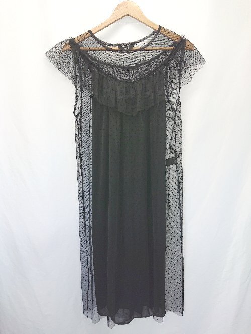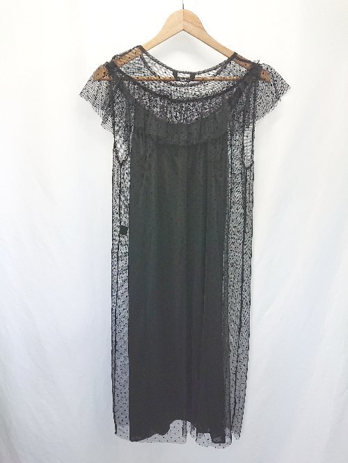 ◇ ◎ ⊂ UNITED ARROWS ドット 水玉柄 チュール ロング丈 ノースリーブ ワンピース サイズ表記なし ブラック レディース E