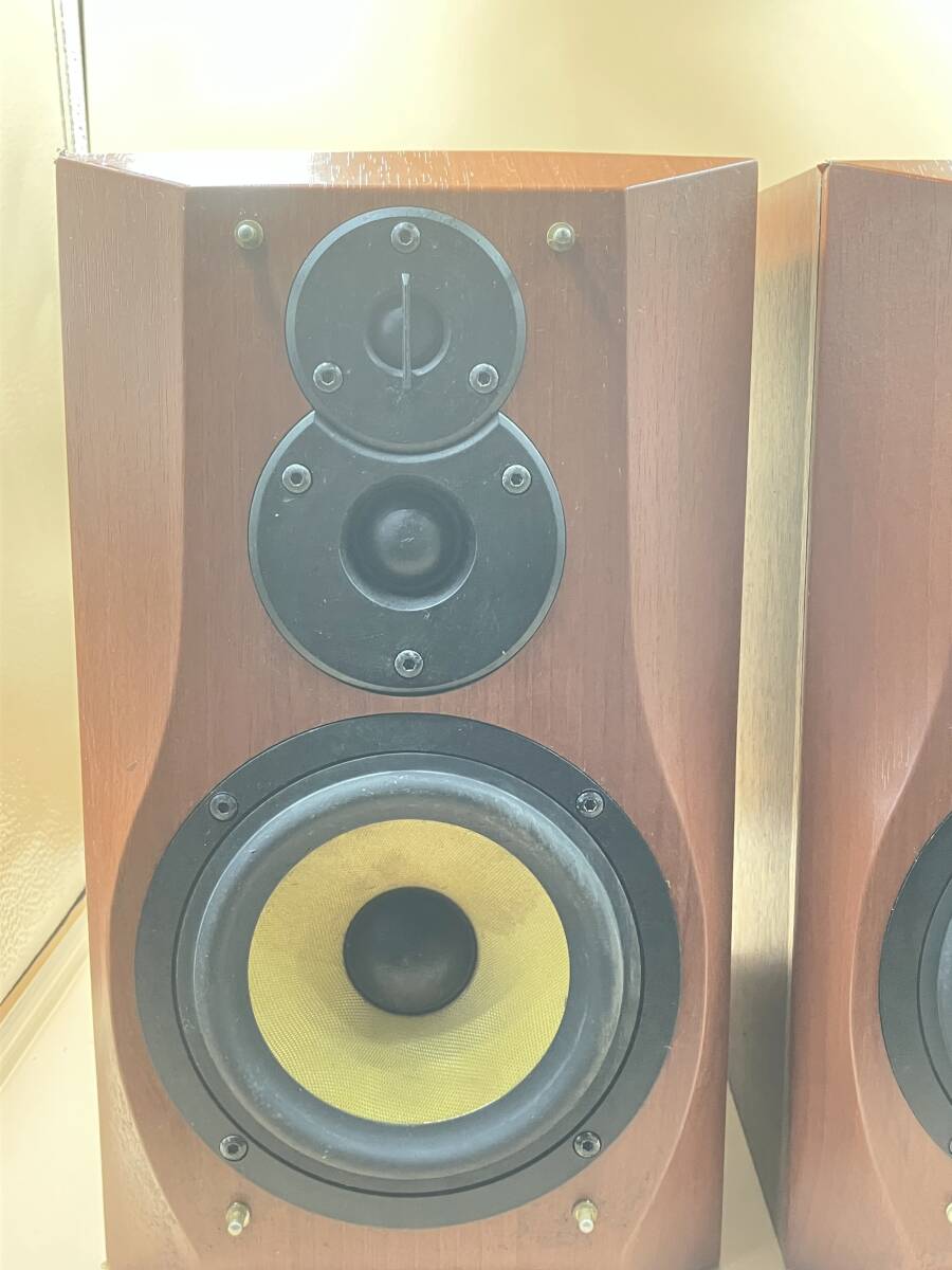 商品説明 | 数ある商品の中からご覧頂きまして、誠に有難う御座います。 ご説明・注意事項を最後まで必ずご確認ください。 必ず最後までお読み頂き、商品を画像でご確認の上、ご入札下さいませ。 BOSE 天井ブラケット CB-33 純正 中古品なので全体的に小さなキズ等御座います。 DENON SC-A555SA 一部画像の通り、傷や擦れ等ありますが、外装がめくれてずれています。傷や汚れ、使用感がありますが、通常使用に問題はない商品です。商品画像でご確認ください。 昨年ピュアオーディオを始め知人から譲り受け最近まで使用しており、音は問題ありません。 新しいスピーカーを購入した為出品です。 完璧な品をお求めになられている方、神経質な方に関しましては大変申し訳ございませんが、ご購入をお控えいただきますようお願いいたします。 モニターの発色具合の具合によって実際の商品と色が異なって見える場合がございます。 商品の状態、付属品等は掲載写真にてご確認をお願い致します。 音質もかなり良くバイワイヤリング接続可能で新しく買ったpolkR200と比べても遜色無いほどです。 発売当時定価一台35000円 タイプ: ステレオ 形状 : ブックシェ ルフ型 再生周波数帯域: 33Hz~ 120KHz インピーダンス:6Ω 詳細 120kHzを実現するスーパーツィーターとP.P.D.D.方式を採用したブックシェルフ型スピーカーシステム。 低域には14.5cmコーン型ウーファーを2個搭載しており、P.P.D.D.方式で駆動しています。 P.P.D.D.方式ではエンクロージャーの前後にセットされたウーファーの片方のエッジを逆向きに装着することで高調波歪をお互いに打ち消し合って解消しており、歪が少なく量感に溢れた低音再生を実現しています。 ウーファーの振動板には軽量で弾性に優れたグラスファイバーを採用しています。 高域には2.5cmソフトドーム型ツィーターを搭載しています。 このユニットの磁気回路にはネオジウムマグネットを採用しています。 超高域には2cmドーム型スーパーツィーターを搭載しています。 振動板には軽量で弾性に優れたナストロン振動板を採用しており、120kHzの超高域までの再生を実現しています。 また、このユニットにもネオジウムマグネットを磁気回路に採用しています。 各ユニットのフレームには非磁性体フレームを採用しており、磁気回路への影響が無く、音の濁りを低減しています。 ネットワーク部には指向性に注目した新設計クロスオーバーネットワークを採用しています。 この回路ではマルチチャンネル再生においてスイートスポットを大きくするため、広域で均一な指向特性を実現する設計となっています。これによりマルチチャンネルスピーカーのセッティングが容易な上に多人数での視聴においても一人ひとりがマルチチャンネルオーディオを楽しめます。 フロントバッフルには3次元加工が施されており、ユニット取付面を最小限にすることでバッフル端面で生じる回折効果を排除しています。また、バッフルには厚さ30mmのMDF材を採用 中古品になりますのでご理解のある方のみお願い致します。 |