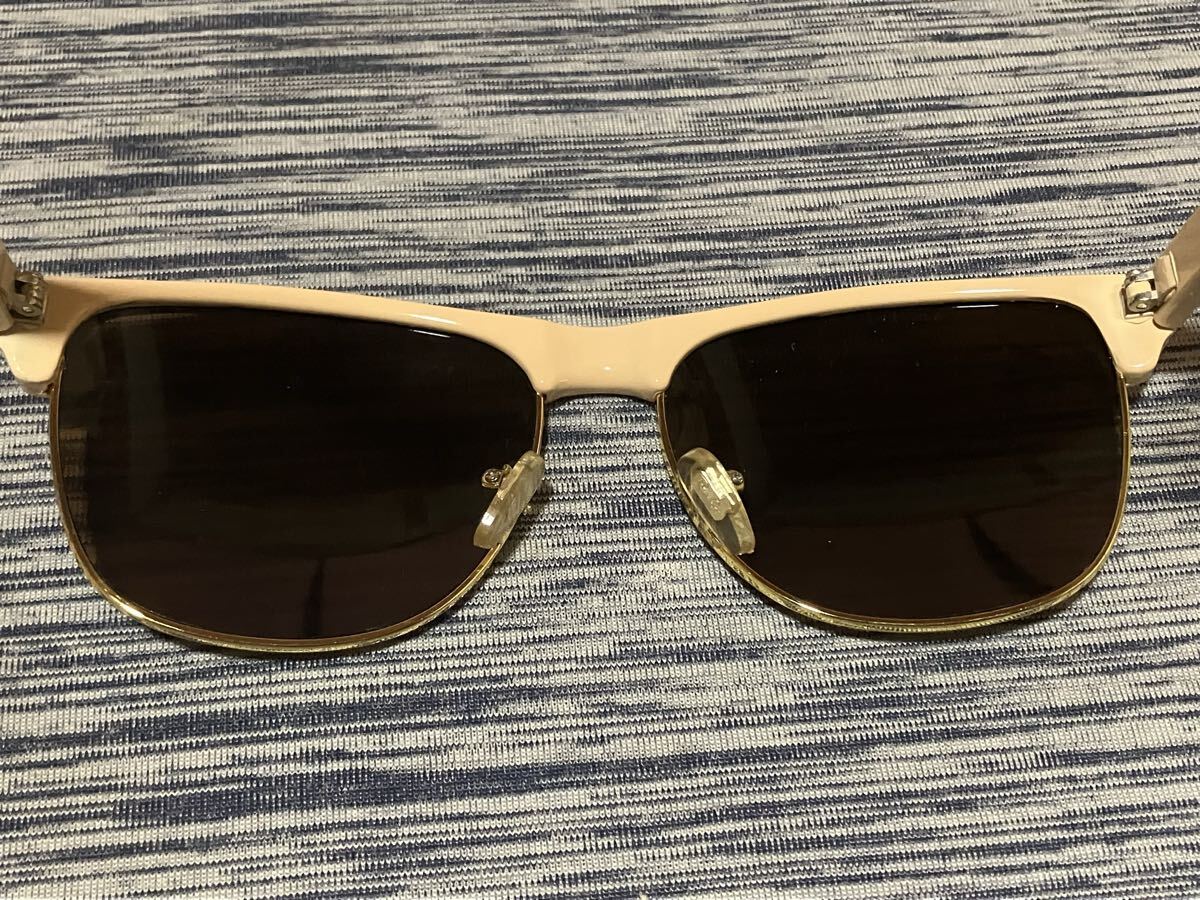 レンズはスモーク、フレームはベージュ系のカラーです。