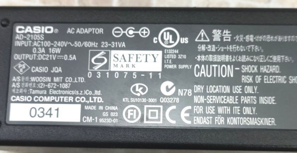 CASIO 純正 ACアダプタ電源 AD-2105S ネームランド/ディスクタイトルプリンタ KLD-200/KLD-300/KLD-350/CW-50/CW-E60/CW-100 動作OK