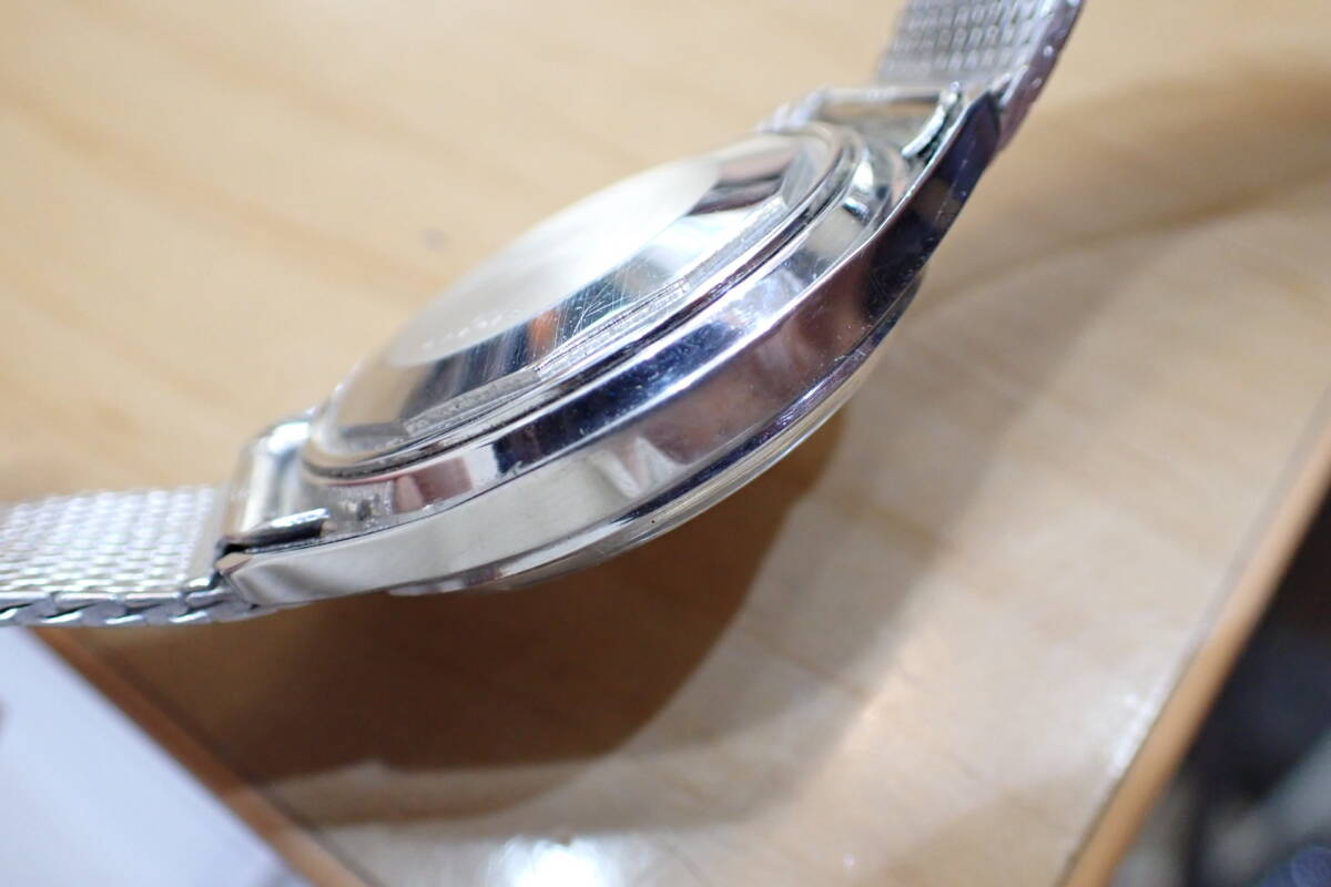 ロンジン/LONGINES アドミラル ねじ込みケース ファイブスター 自動巻きメンズ腕時計です。 貴重なロンジンのアドミラルです。 廃業時計店の在庫品で、あまり使われていないようです。 ケースや純正ベルトに細かい傷等ありますが、目立ったダメージはありません。 プラ風防に傷あります。 ほか、写真でご確認ください。 振って数分程度の確認ですがカチカチと動いています。 長時間の動作や日差は不明につき、オーバーホール前提でジャンクでお願いします。 ケース径:約35mm !オークション終了後、24時間以内に「お取引を始める」ボタンをクリックして、必ず取引をスタートして下さい。 取引のスタートが無ければ、削除させていただきます。 必ず厳守してください! 「新規ID」「直近で悪い評価が多い方」のトラブル(イタズラなど)が非常に多いです。 当方が、お取引に支障があると判断したID(特に新規ID)は削除します。 ●ジャンク品と記載の物の商品到着時の動作保証はありません。 ●付属品等は、写真に写っているものですべてです。 |
