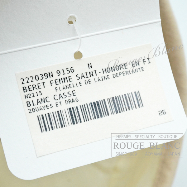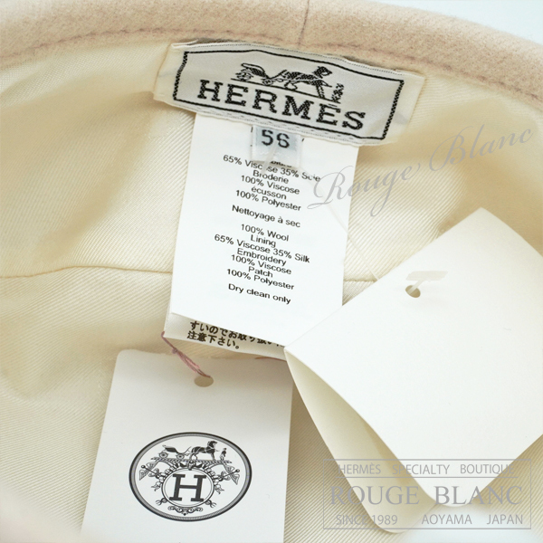 新品 エルメス 国内定価104,500円 ベレー帽 ”サントノーレ フィネス” ブランカッセ #56 タグ付 HERMES 帽子 ベージュ アイボリー