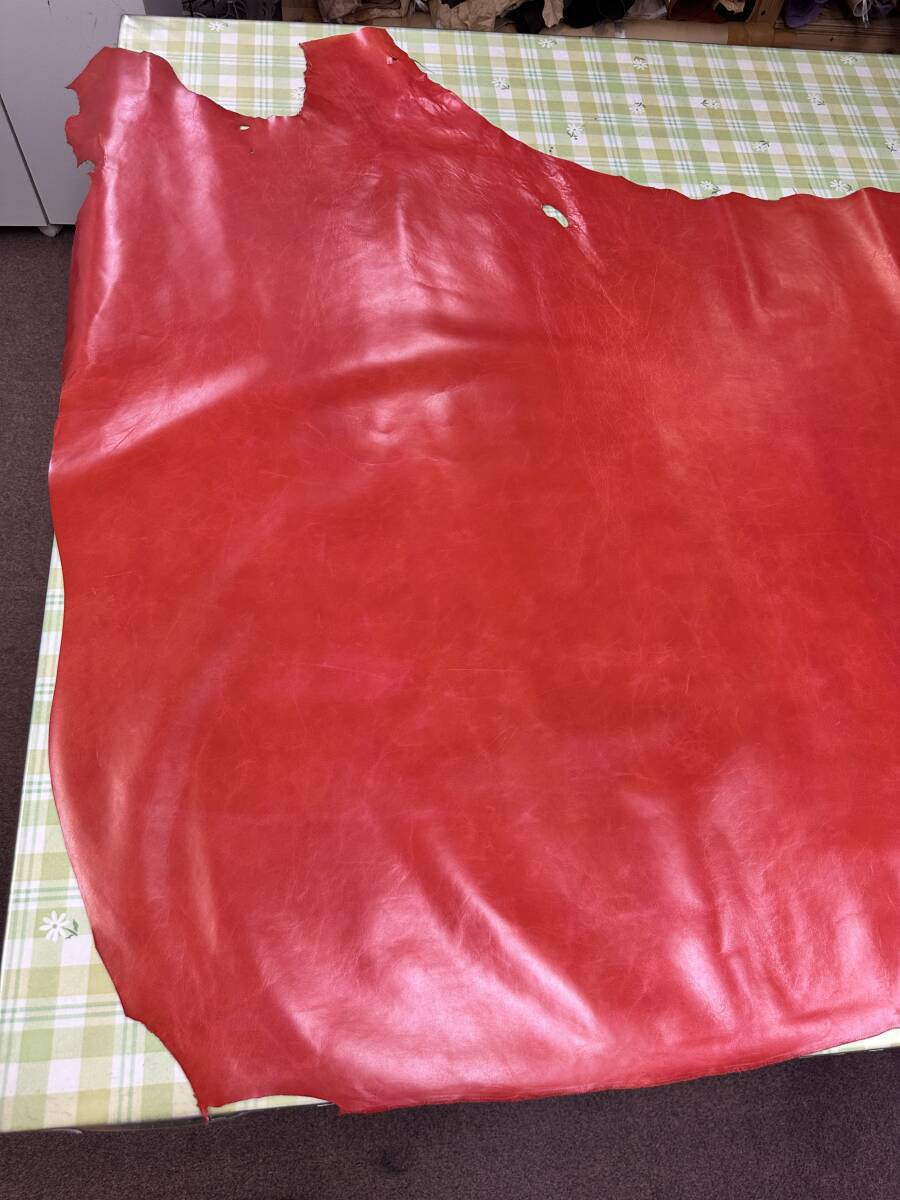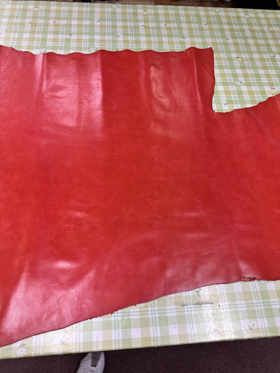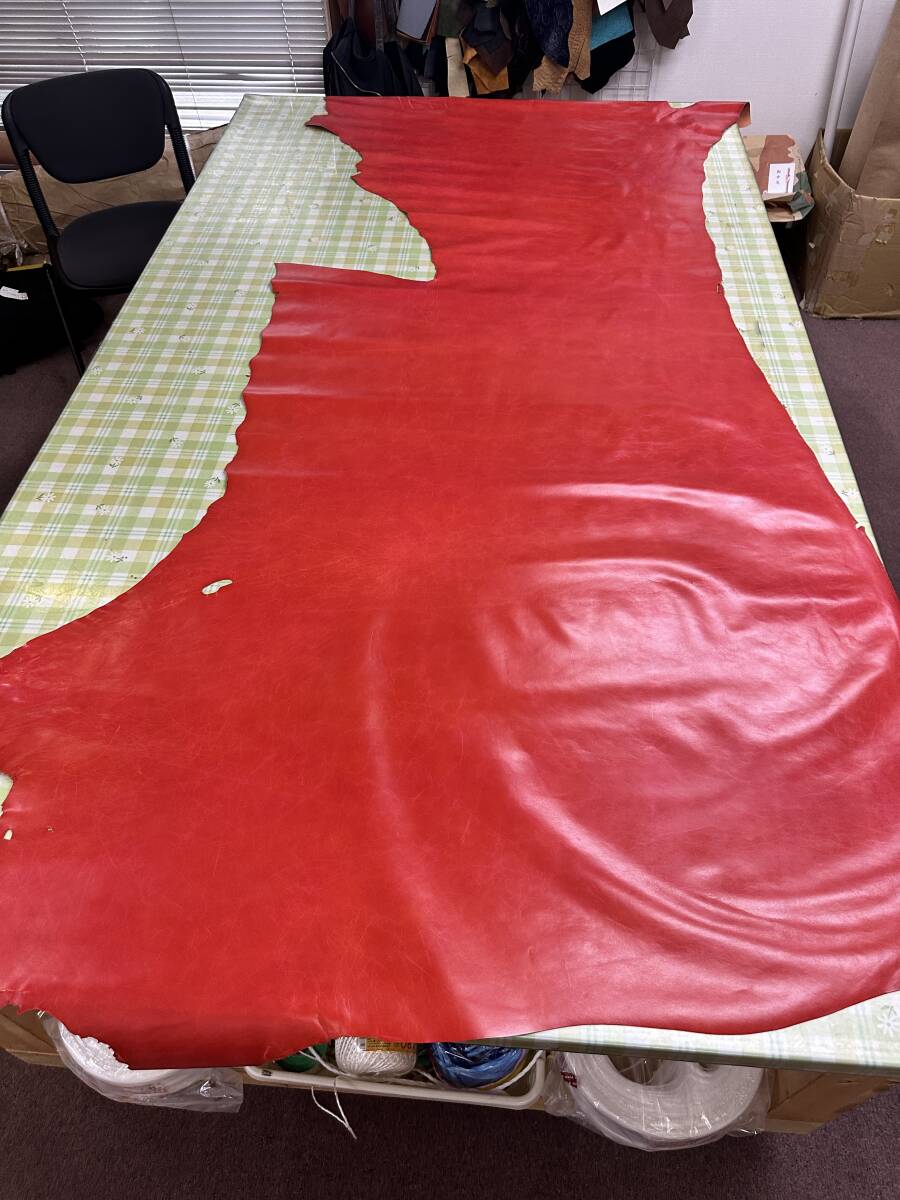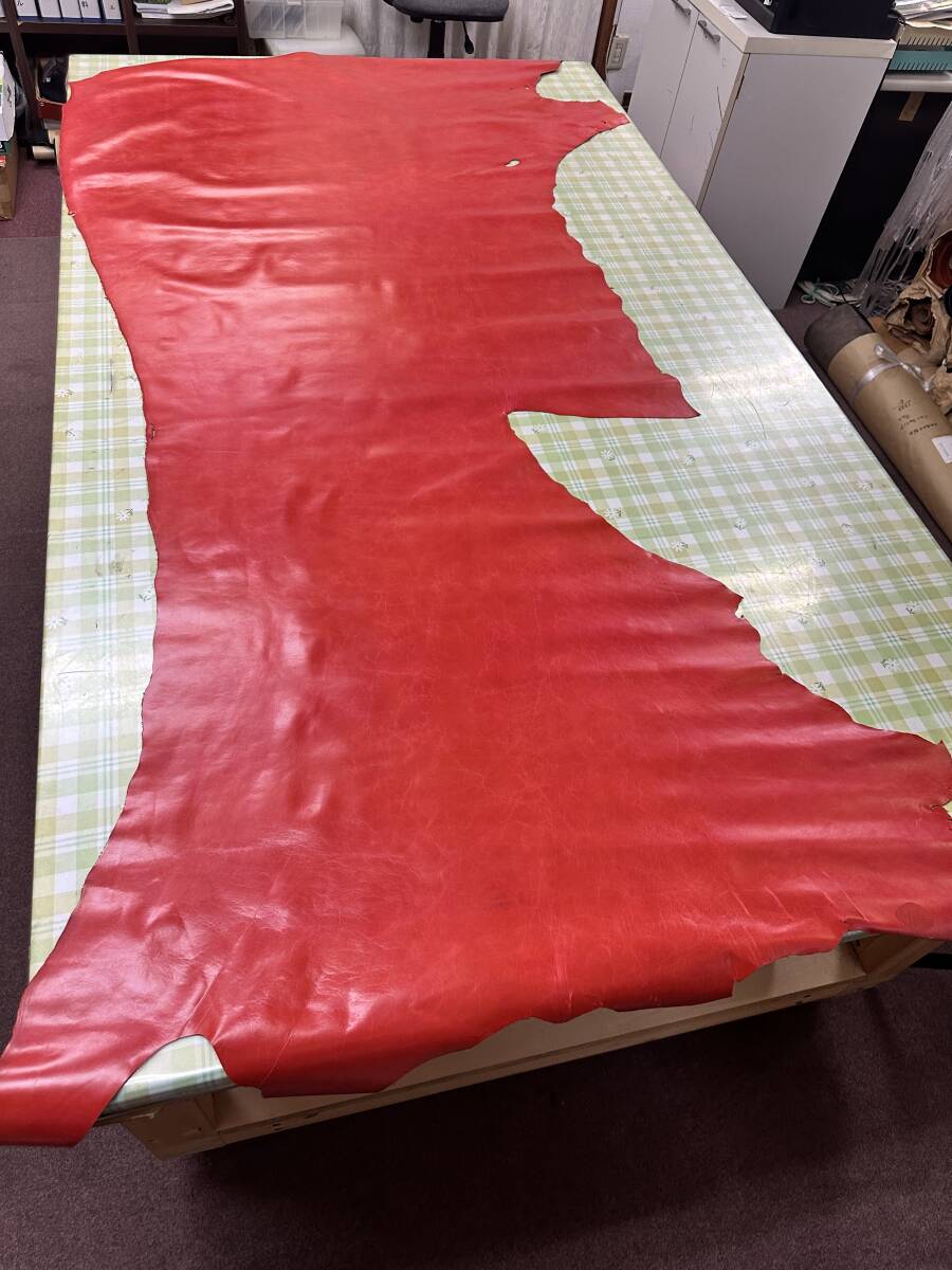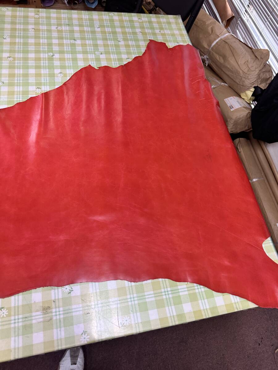 馬革 半裁 プールアップ 赤 0.7mm~0.8mm 212ds前後