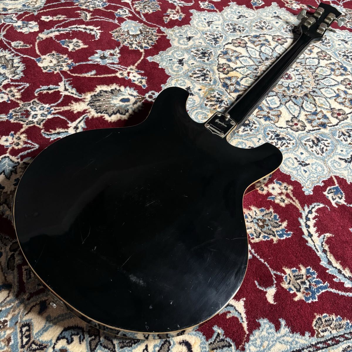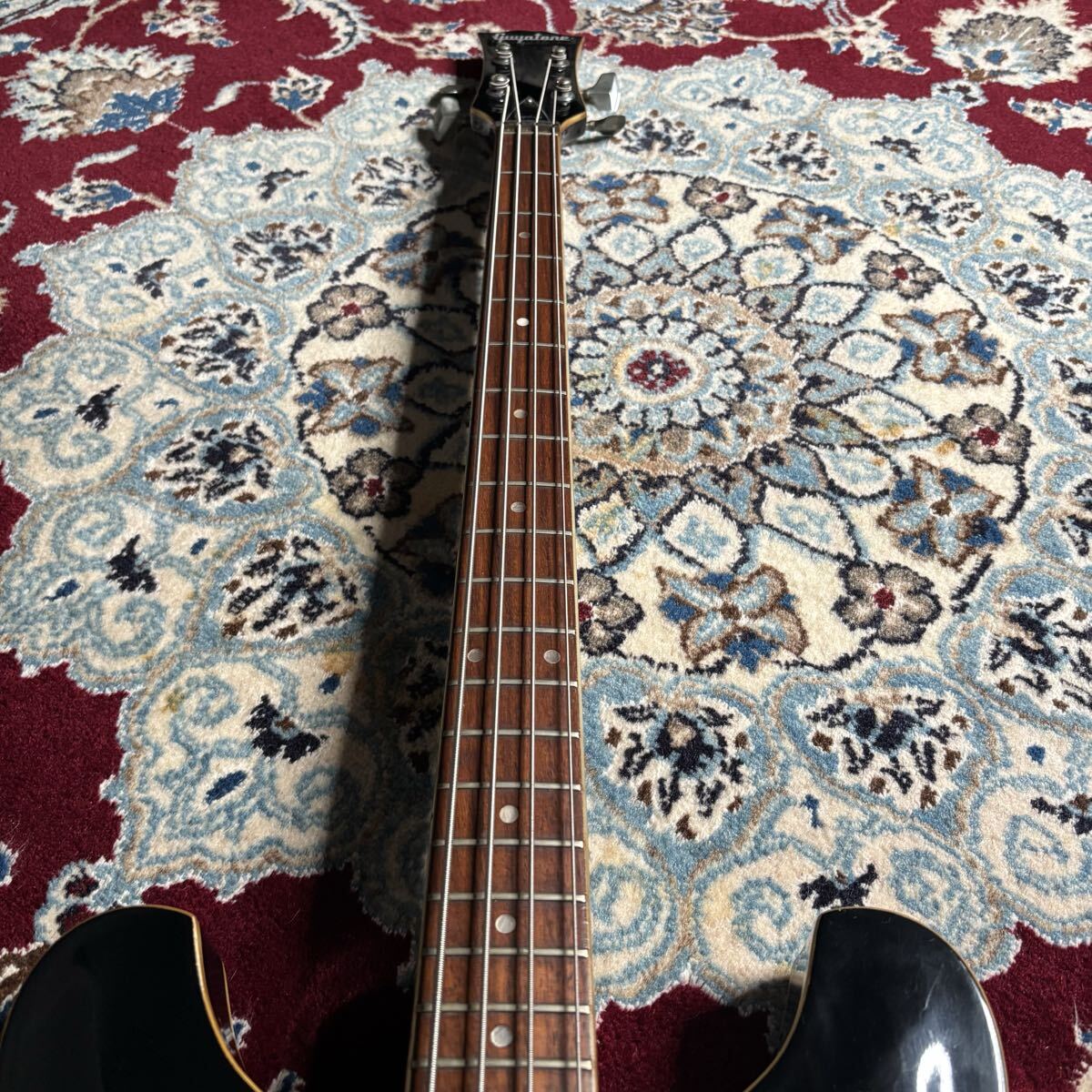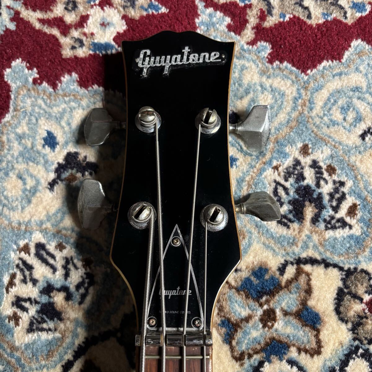 今や滅多に見かける事の無いグヤトーンのジャパンヴィンテージのビザールベースです。ピックガード欠品しているもののパーツはある程度純正ではないかと思います。