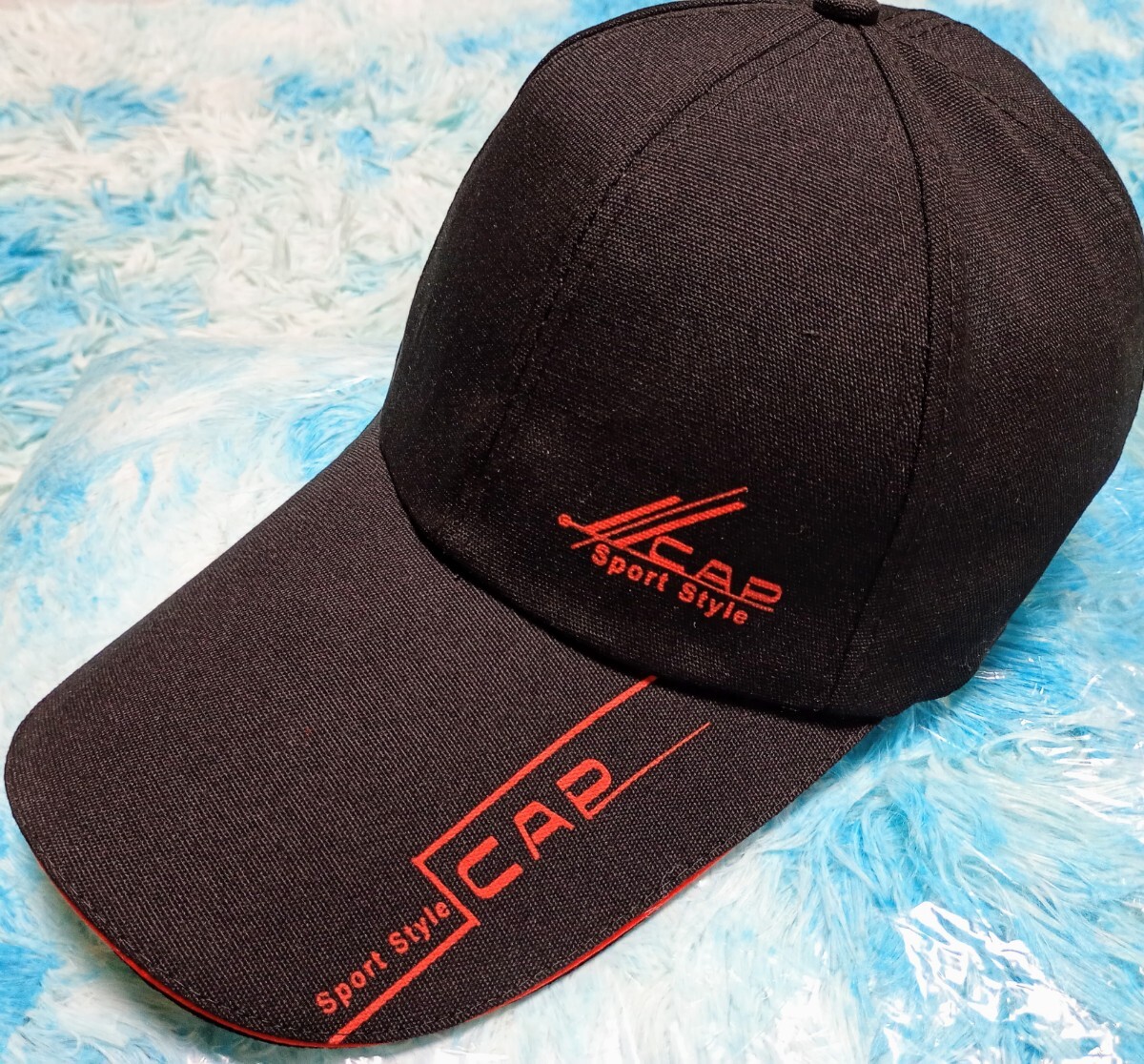 ☆新品「スポーツスタイルキャップ つば長め 黒/赤字」帽子/キャップ