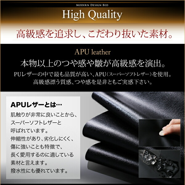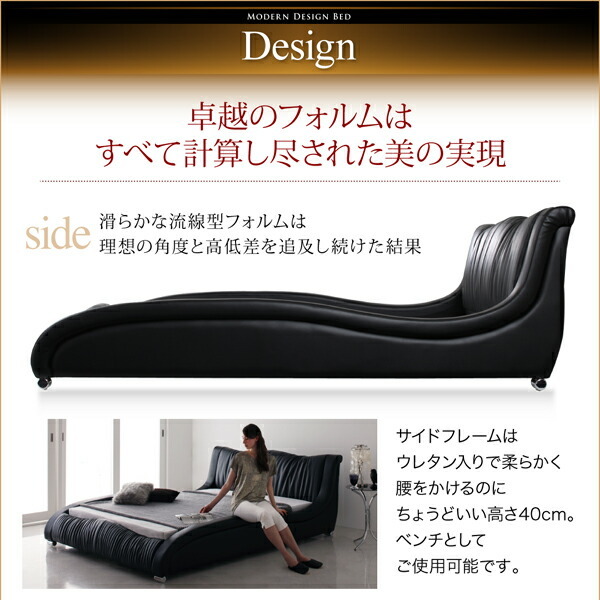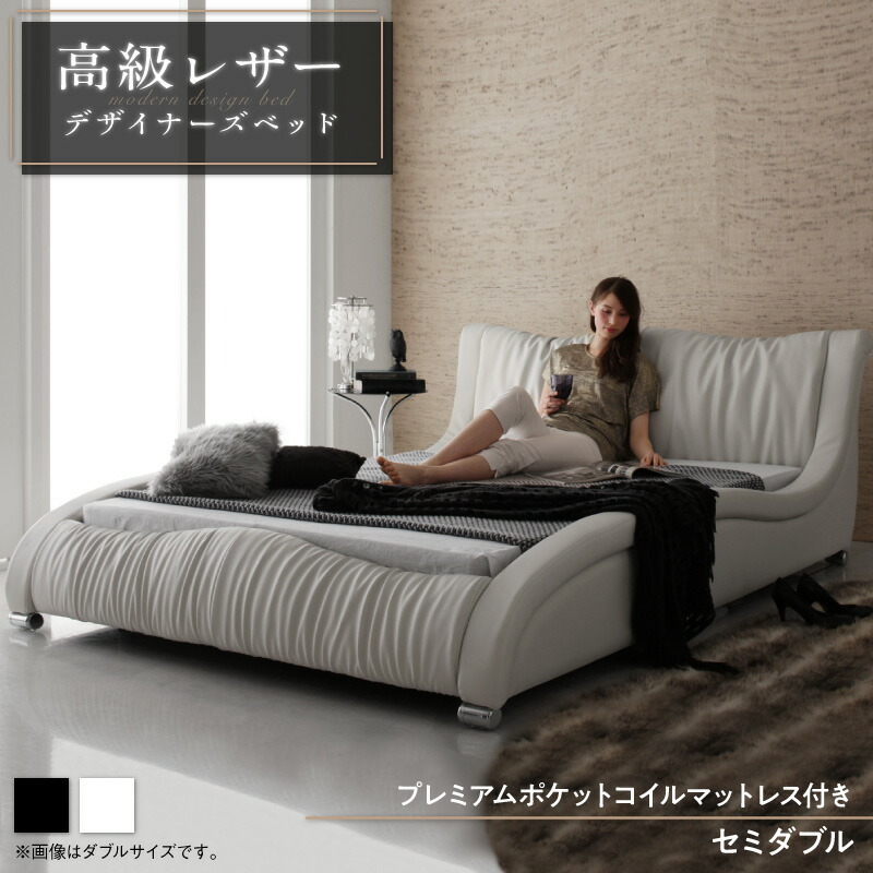 モダンデザイン・高級レザー・デザイナーズベッド プレミアムポケットコイルマットレス付き セミダブル 組立設置付