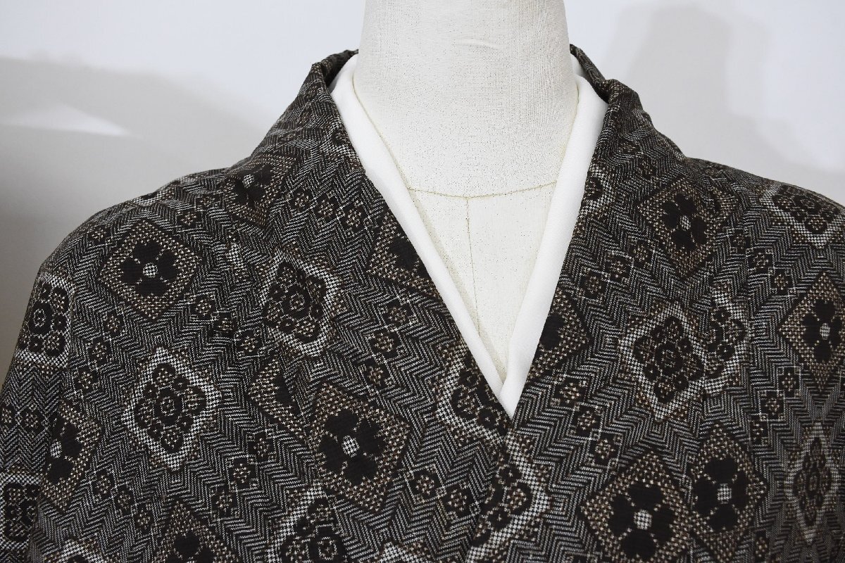 サイズ | ▼身丈 (背中から) 145cm ▼裄丈 63cm ▼袖丈 49cm ▼後巾 29.5cm ▼前巾 23.5cm |