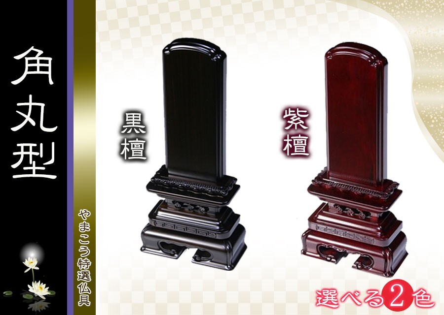 | 唐木位牌 角丸型 黒檀調・紫檀調 4.5寸(色は下記プルダウンよりお選びください) 唐木位牌は伝統的、かつ高級感溢れる位牌です。また、極めて耐久性に優れ、長年にわたり御安置して頂けます。 お位牌の文字入れ加工が必要な場合は、ご購入時に当店へ【お客様ご要望】欄よりご記入の上お申し付けください。加工のご希望がない場合は未加工の製品をお届け致します。 文字加工は無料です。(御納品は、文字の仕様が決定後、2週間程お日にちを頂戴致します) 書体・字色は画像内見本の仕様のみとなります。また、弊社にてご登録の無い文字・二人書き等は別途、お見積りとなり有料となる場合がございますのでご了承下さいませ。その場合は商品注文キャンセルも可能となっております。 位牌加工内容は下記リンクよりフォーマットをダウンロードしてご記入ください。ご記入後、弊社までFAX、メール添付、郵送のいずれかにてご連絡下さい。 → お位牌文字フォーマット(クリック) 上記リンクのフォーマットがプリントアウトできない場合は、当店よりフォーマット用紙をFAXまたは郵送させて頂きます。ご注文時に【お客様ご要望】欄にFAX番号または郵便送付先ご住所をお伝えください。 | |||