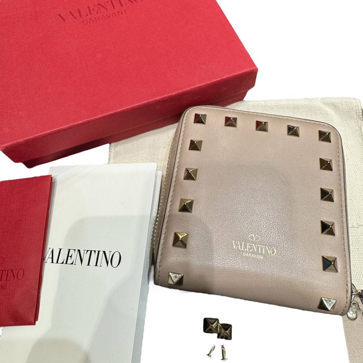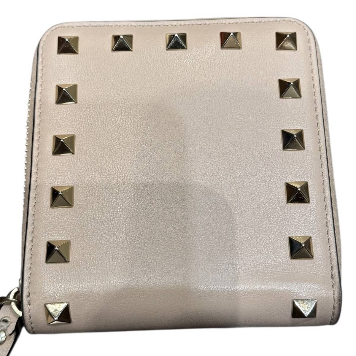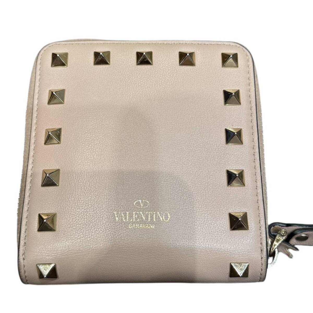 | Valentino ヴァレンティノ ロックスタッズ 二つ折り財布 レザー 牛革 ピンク チャック部分破損 レディース |