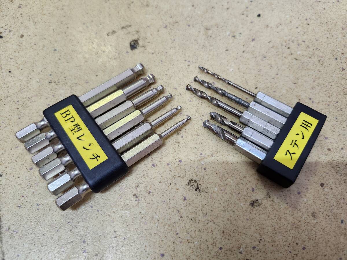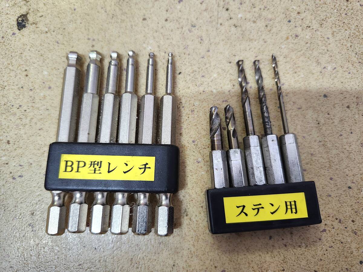 軸径6.35㎜のインパクトドライバー対応のボールポイント型六角レンチとステン用ショートタイプのドリル刄です。