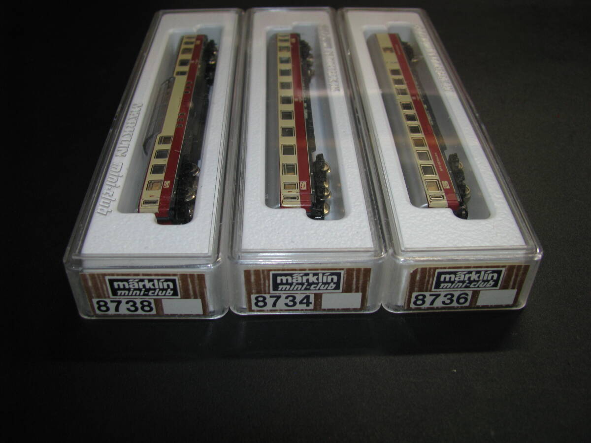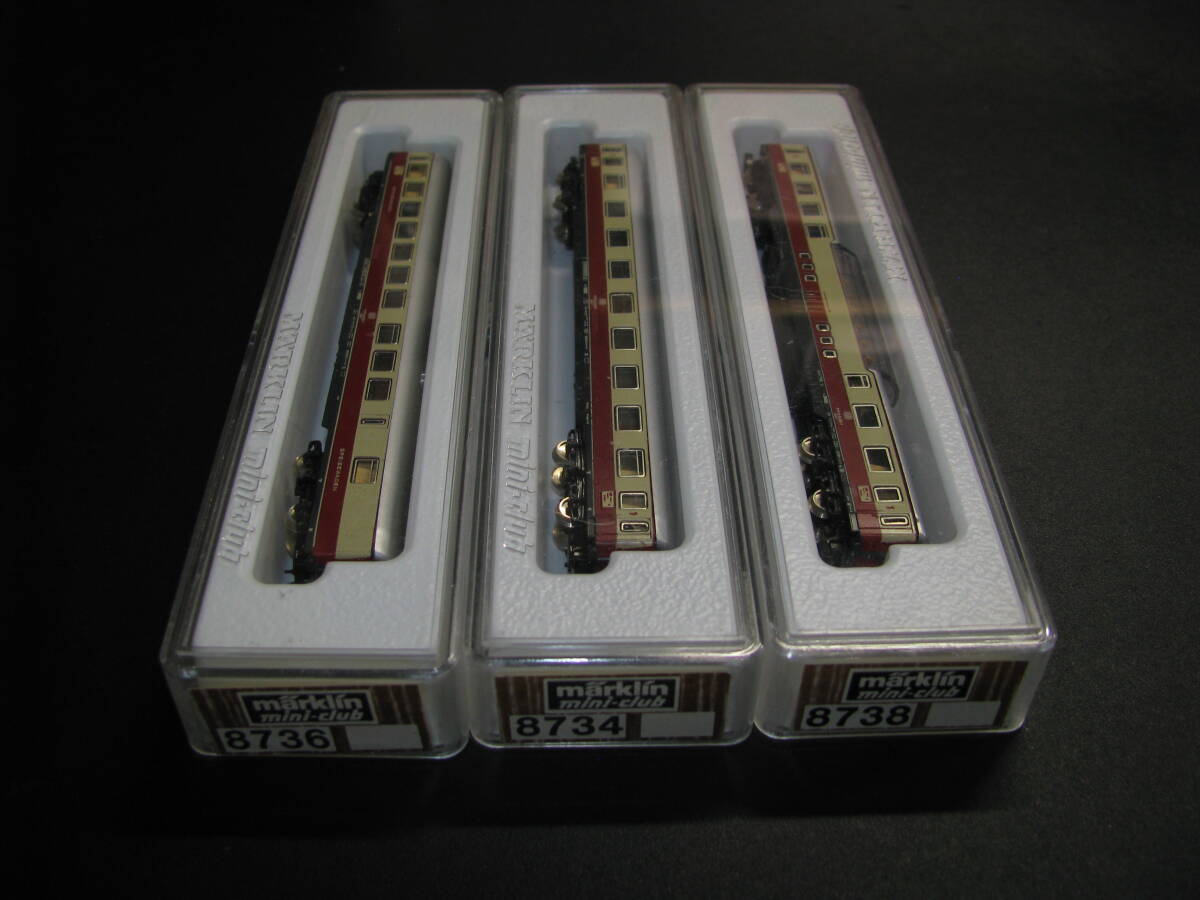メルクリンミニクラブ ドイツ国鉄の8734 8736 8738 客車3両セットです。使用歴わずかの保管品ですが状態は写真でご確認ください。レターパックライトでお送りいたします。
