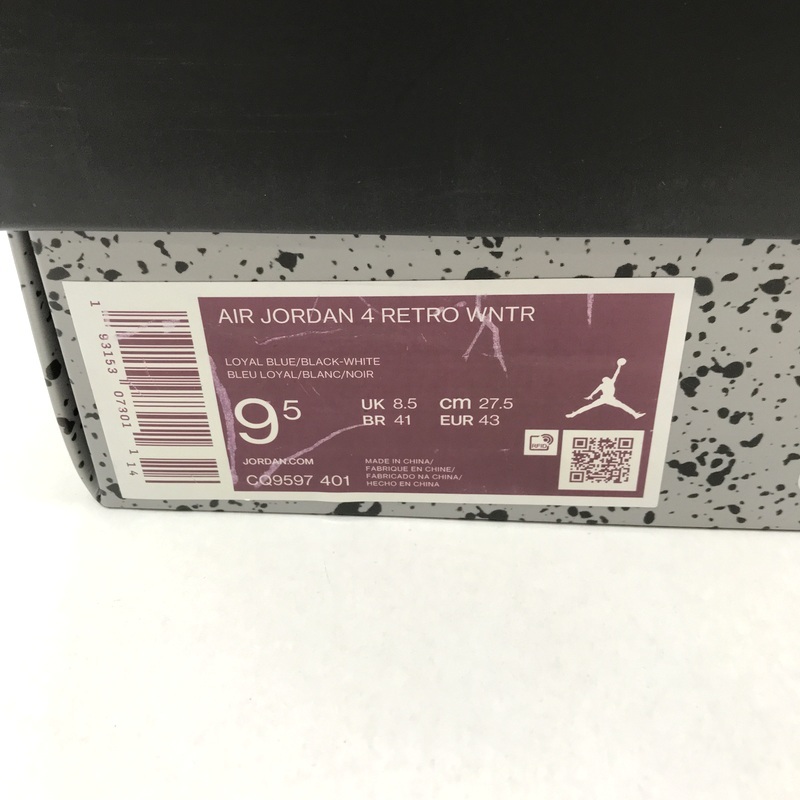 Nike ナイキ スニーカー Air Jordan 4 Retro WNTR Loyal Blue White Black CQ9597-401エアジョーダン4 レトロ WNTR 箱付き ランク:B 通常の着用に伴う使用感が見られますが、 ダメージの少ない比較的良好な商品です。 箱に傷、アウトソール汚れ、履きじわ、全体的にスレ感ありです。 ※写真にないものは付属しておりません。 原産国/製造国:中国 カット:ローカット 靴のアウトソール素材:ゴム 個数:1 靴のサイズ(US:Men):9.5 靴のサイズ(UK):8.5 靴のサイズ(EUR):43 カラー:ロイヤルブルー ホワイト ブラック |