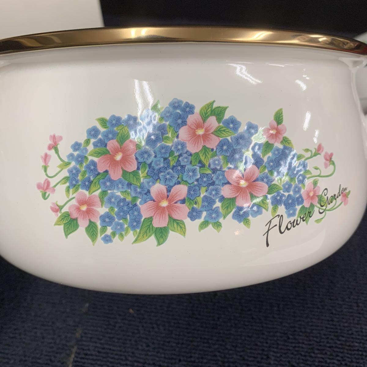 フラワーガーデン 両手鍋です。未使用で自宅にて長期保管しておりました。大きな傷はありませんが、一度人の手に渡っていますので、神経質な方や完璧を求める方のご入札はご遠慮ください。