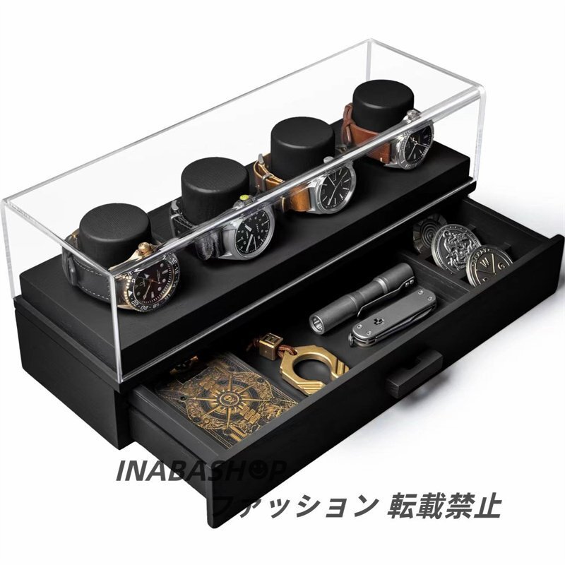 腕時計スタンド 腕時計ケース 木製 復古 時計ケース4本用 長方形 ウオッチケース 引き出し付き 収納ボックス コレクションケース 持ち運び