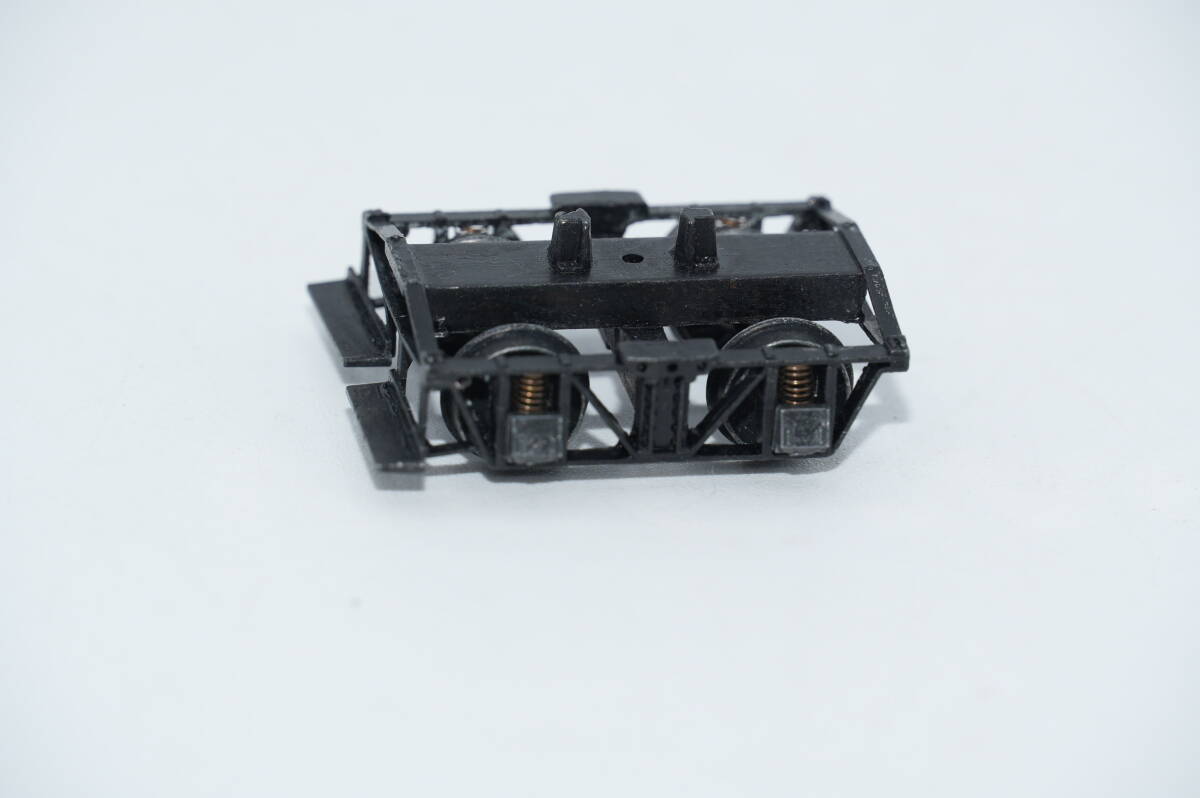 【Kadee製】ディスコネクテット ログカー用台車4組です。台車のみでカプラーも何もついておりません。片側にステップがついております。元々はロギングカブースについていたものですが、上屋は転用してしまいましたので残った台車のみとなります。転がりが非常によく勝手にどこかへ走り去ることも多い製品です。工作にいかかですか。尚、アーチバータイプではありますが、普通のアーチバー台車よりはかなり大きいので貨車などの台車にしてみようとしてもうまくいかないかと思います。On30の貨車の台車にピッタリくらいのサイズ感です。
