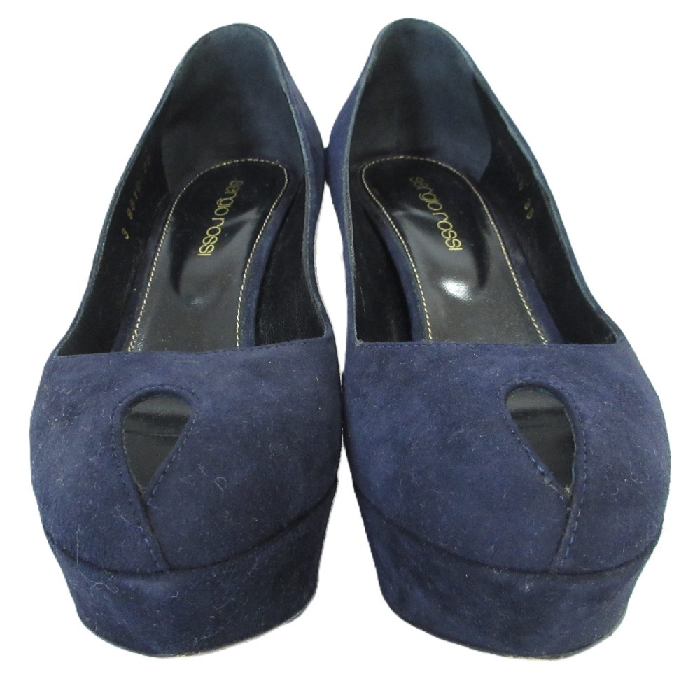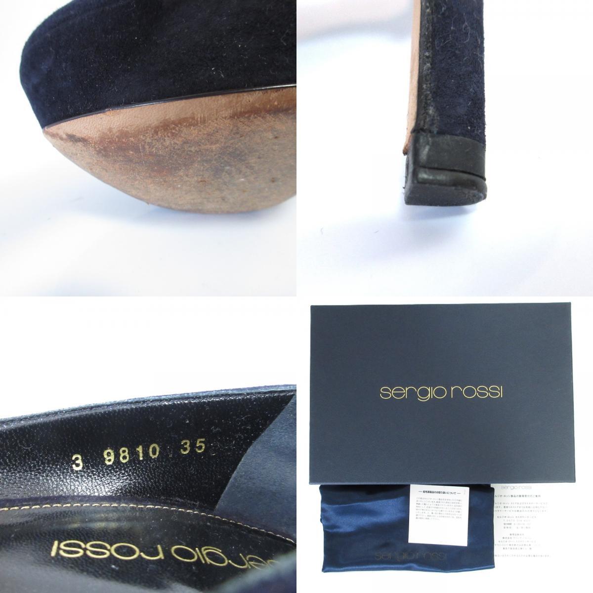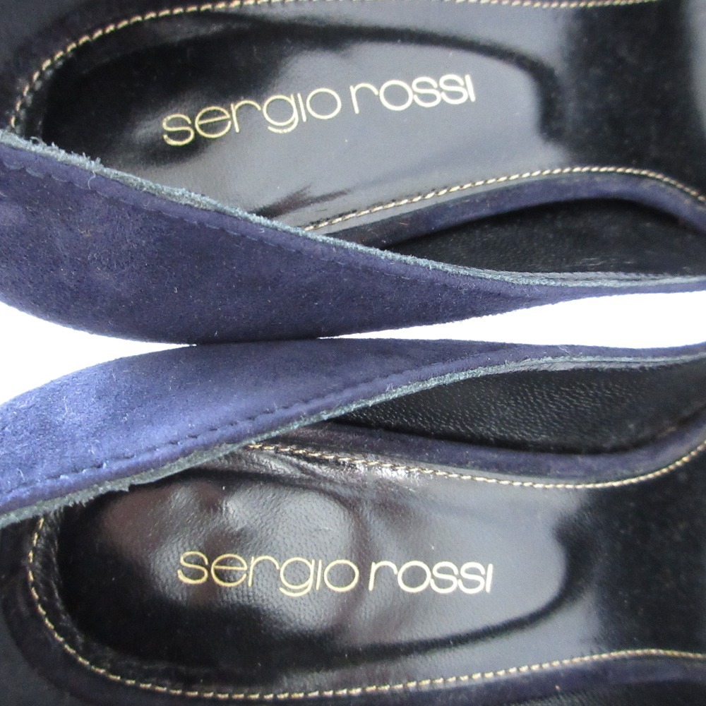 美品 Sergio Rossi セルジオロッシ スエード ハイヒール プラットフォーム パンプス 35 22.5cm ネイビー