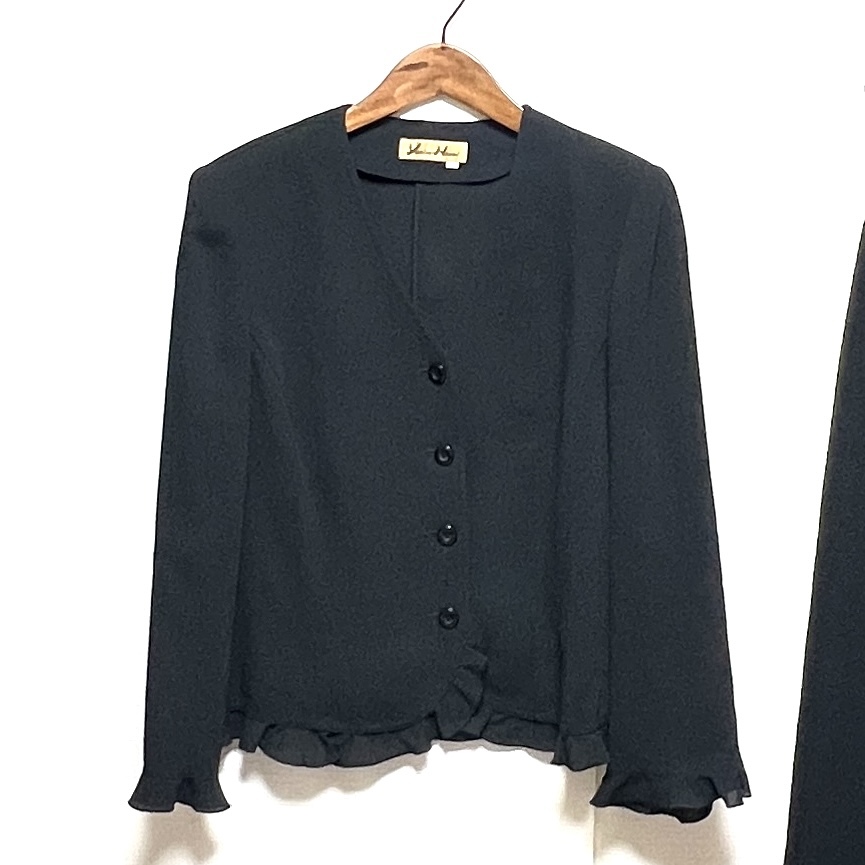| ユキコハナイ yukiko HANAI レディース 黒 スーツ サイズM レターパック可 (954979) * 商品説明 * ・表記サイズ: M ・色: ブラック ・素材: ポリエステル95%、 指定外繊維レクセ 5%、 ・実寸サイズ(単位cm): 肩幅40、胸囲48、ウエスト部44、着丈54、袖丈54、 ウエストゴム入り31、ヒップ51、着丈78、 *平置き採寸となります。 ・商品状態: 多少の使用感はございますが全体的に状態は良好です。 | ||||||||