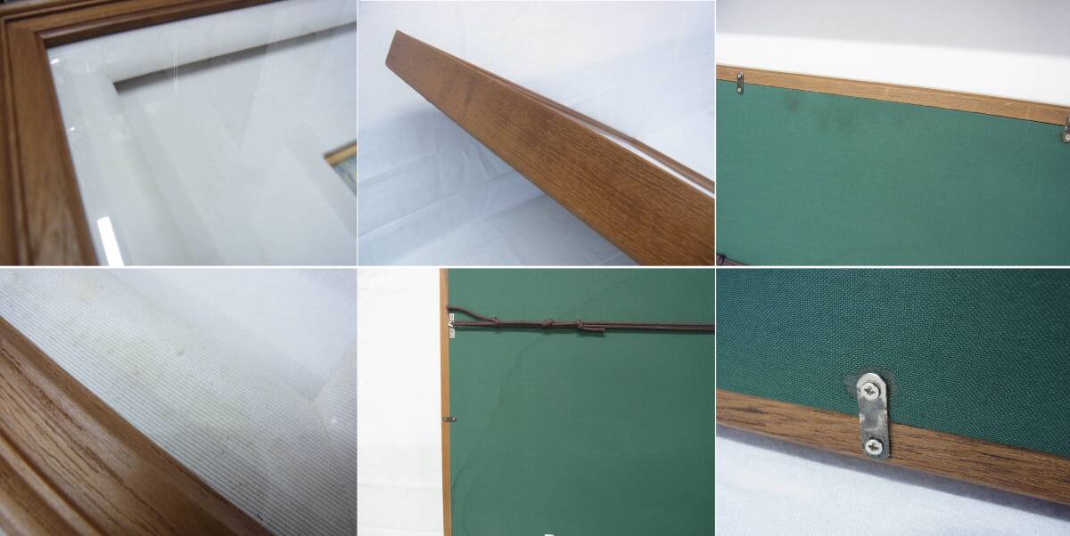 | コレクターの方から譲りうけた物です。 本来の状態、画の種類(リト、セリグラフ他)など当方詳細はわかりません。 画像にてお詳しい方、お判りになる方のご判断でお願い致します。 画に影響が出ているかわかりませんが、内枠にシミ・汚れや入り込んだ塵などがみられます。 また、フレームもスレキズやシミ・汚れ、裏面も水濡れ跡などがございます。 美術品の取扱い知識がなく、デリケートな物かと思いますので、 現状でのお渡しとさせて頂きます。 十分なご検討をお願い致します。 状態に関しましては、画像でご確認いただき、ご判断と十分なご検討をお願い致します。 気になる点はご入札前にご質問ください。 ※専門的な知識がありませんので、ご質問内容によっては お答え出来ない場合があるかもしれません。予めご了承ください。 中古・現状でのお渡し、経年保管品になりますので、 ご理解いただける方のご入札いただけましたら幸いです。 撮影した照明により、色合いが多少違って見えるかもしれませんが、ご了承ください。 【サイズ】 額:約51.4×約74.5センチ マット窓:約30×約53.5センチ ※素人採寸です。多少の誤差はご容赦願います。 ※マット窓のサイズはガラス/アクリル板越しの採寸です。 【発送方法】 ・ゆうパック/140サイズ | |||