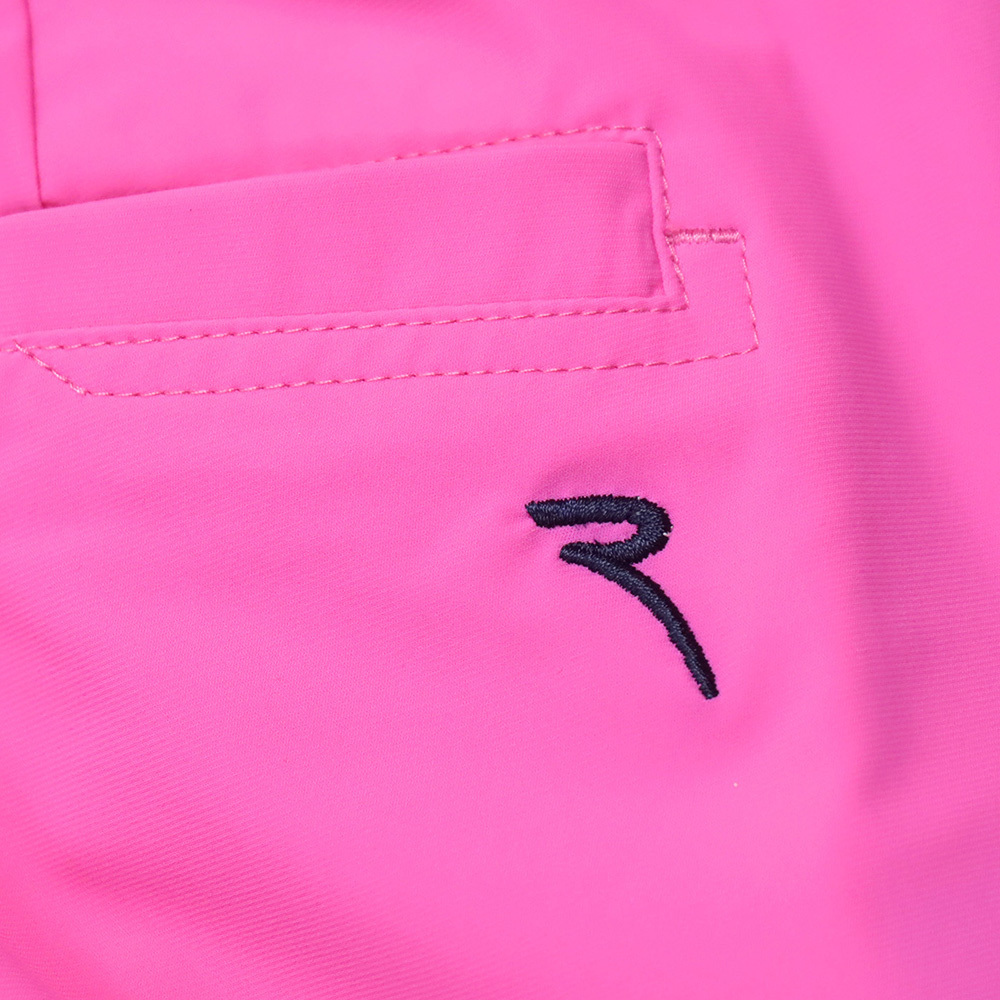 ベルトループにブランドロゴ入りパッチを施した、さりげないこだわりを感じさせるデザインも魅力。機能性・デザイン性・快適性の三拍子が揃った仕上がりで、ゴルフ場からそのまま街へと移動しても違和感のない、大人のゴルフスタイルを演出します。