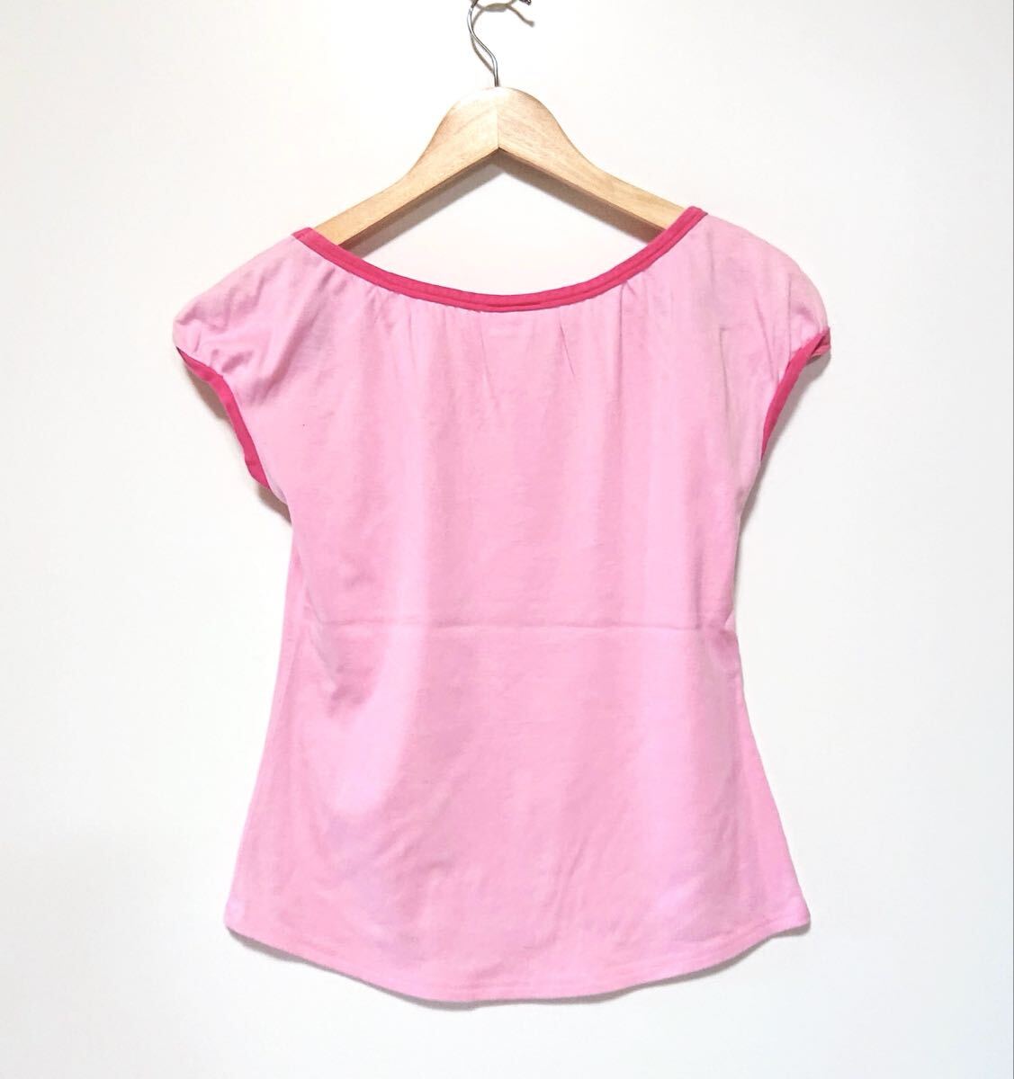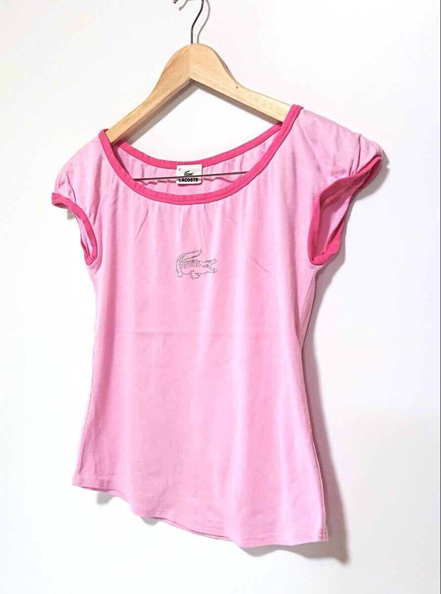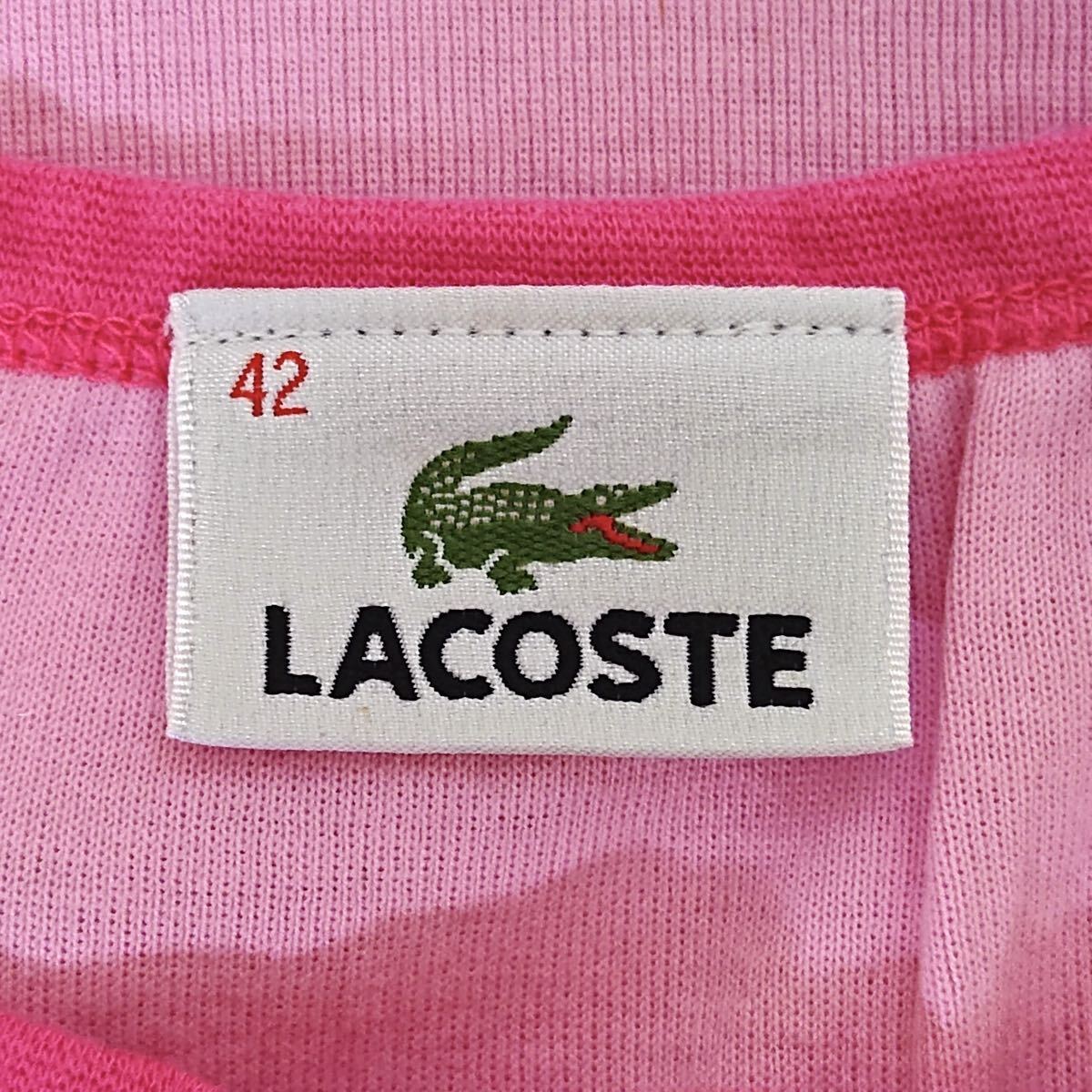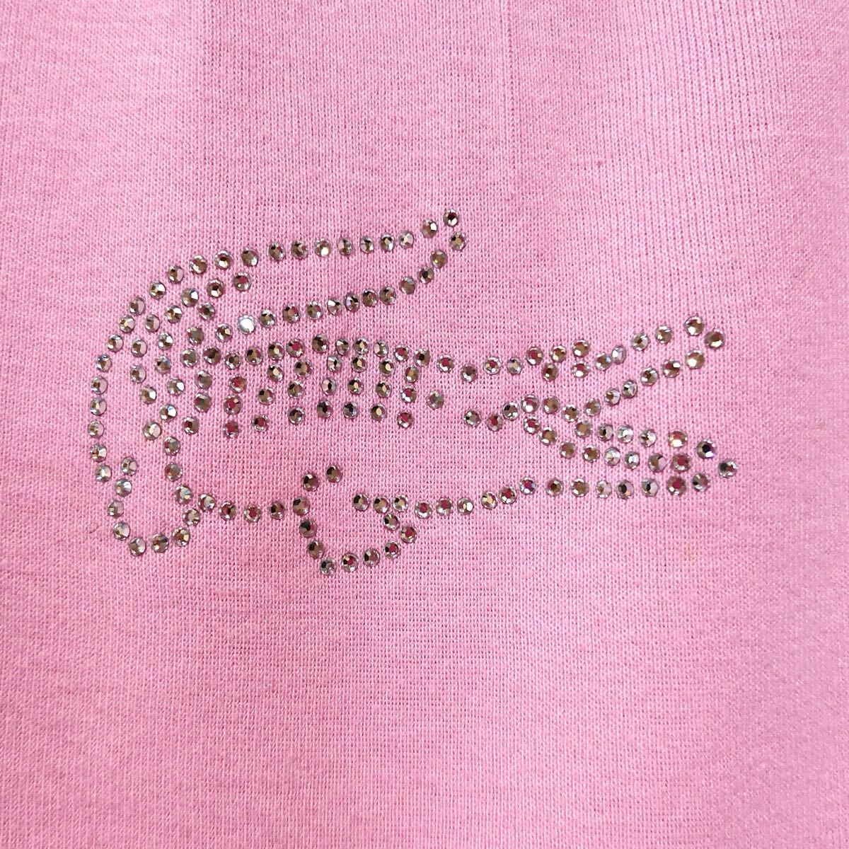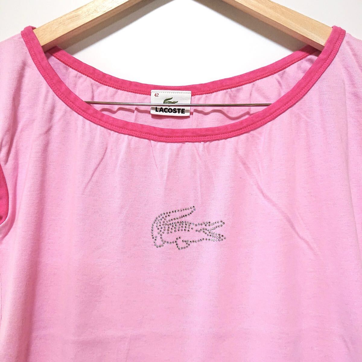 h4133gg 日本製 LACOSTE (ラコステ) サイズ42(M位) 半袖Tシャツ ピンク レディース スポーティ カジュアル スポカジ ワニラインストーン
