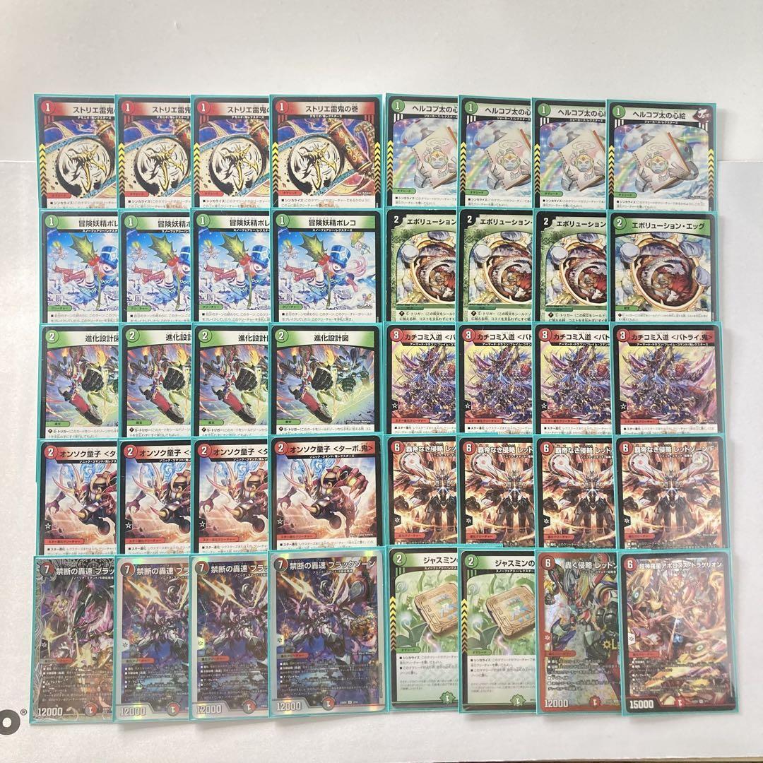 ◆環境クラスの赤緑アポロヌスデッキ! ☆豊富なサーチからの低速スター進化でアポロヌスのワンターンキル 殿堂でも環境クラスにふさわしい安定感と実力を持つ ☆インナースリーブとオーバースリーブの即実戦二重スリーブセット ★あなたのデッキカスタマイズサービス ・デッキパーツの追加変更 ・スリーブの追加変更 ・レアリティの変更 ・その他なんでも ご希望に応じたデッキのカスタマイズを相談してください。 ご相談はコメント欄よりお願いいたします。 ↓↓↓その他デッキはこちら #かしこまデュエマデッキ #かしこまデュエマアポロヌスデッキ #かしこまデュエマ環境デッキ メインデッキ 4枚《ストリエ雷鬼の巻》 4枚《ヘルコプ太の心絵》 4枚《冒険妖精ポレコ》 4枚《エボリューション・エッグ》 4枚《進化設計図》 4枚《カチコミ入道 <バトライ.鬼>》 4枚《オンソク童子 <ターボ.鬼>》 4枚《覇帝なき侵略 レッドゾーンF》 4枚《禁断の轟速 ブラックゾーン》 2枚《ジャスミンの地版》 1枚《轟く侵略 レッドゾーン》 1枚《超神羅星アポロヌス・ドラゲリオン》
