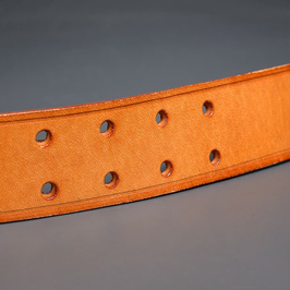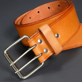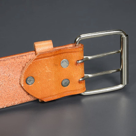明るめの上品なブラウンカラーが目を引く牛革製のベルトです。