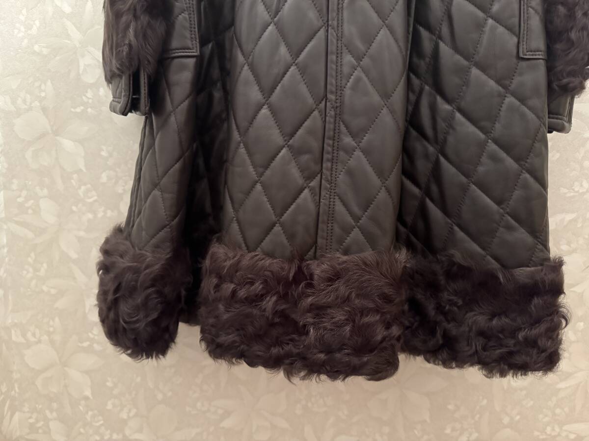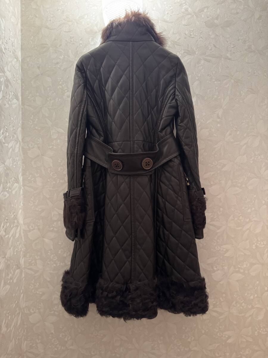 ヴィンテージ BURBERRY バーバリーブルーレーベル   毛皮付き ロング革コート ブラウン サイズ38 希少品
