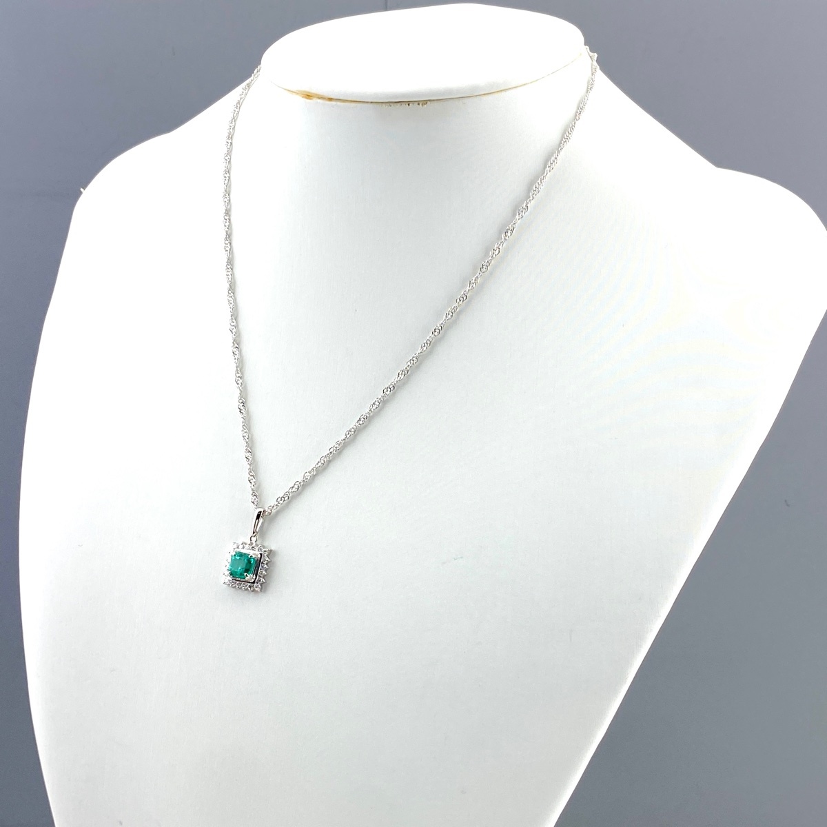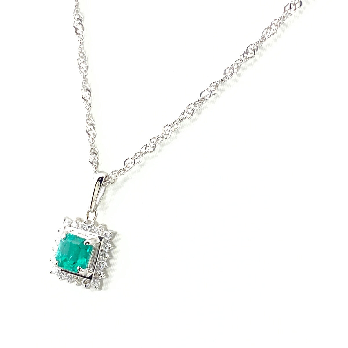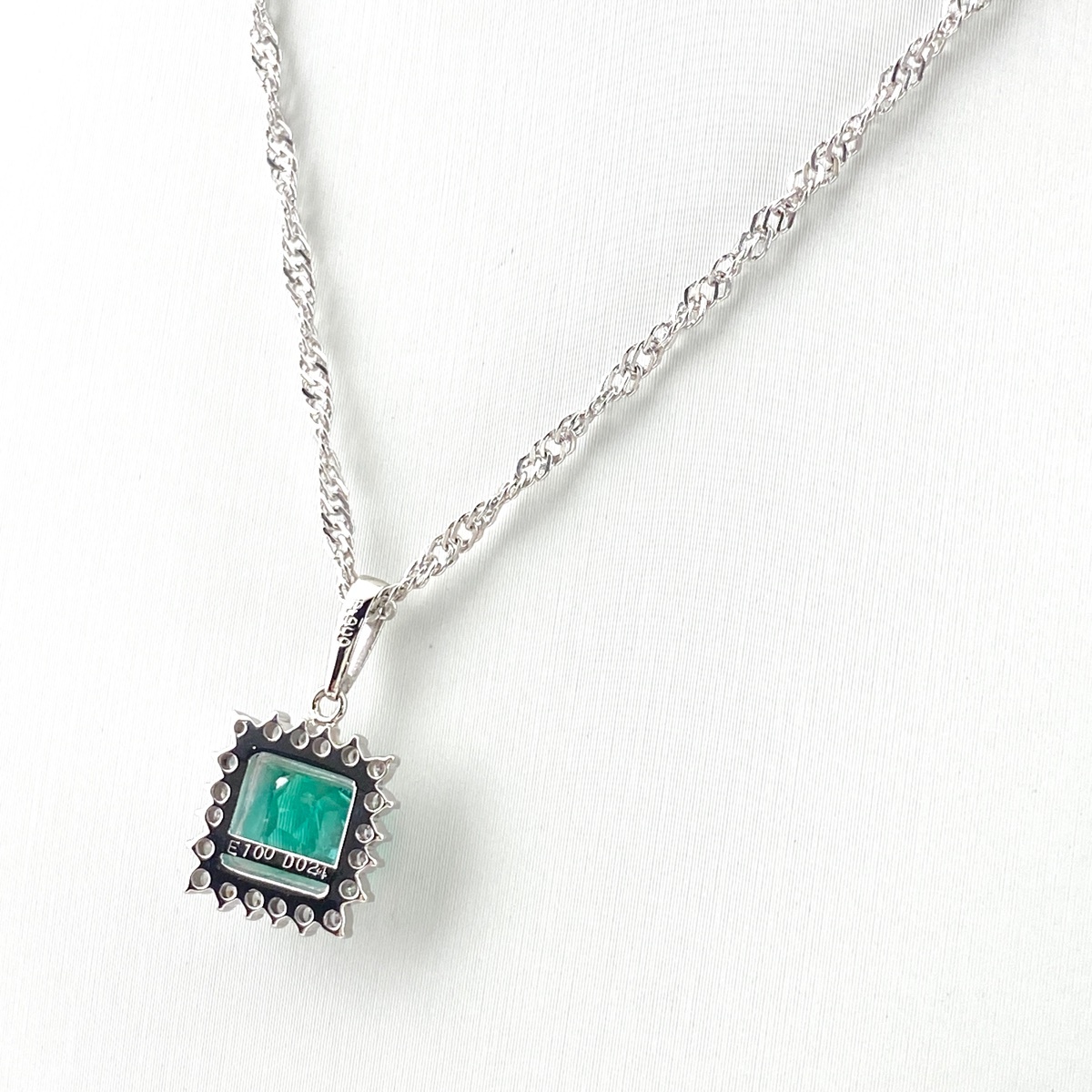 トップ:Pt900、チェーン:Pt850 エメラルド:1.00ct、メレダイヤ:0.24ct 中古品の為、若干のキズや汚れがございます。 |