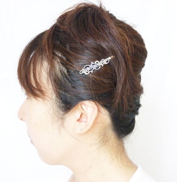 商品説明 | 可愛らしいお花ラインストーンが輝くヘアピン。 エレガントな曲線ラインで、女性らしいヘアスタイルに☆ サイド留めやアップスタイルのポイントアクセなど、色々なアレンジが楽しめます。 普段のオシャレからちょっとしたお呼ばれシーンまで、幅広く使えるアイテムです。 |