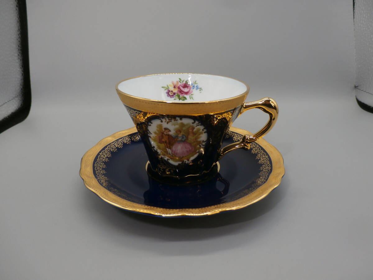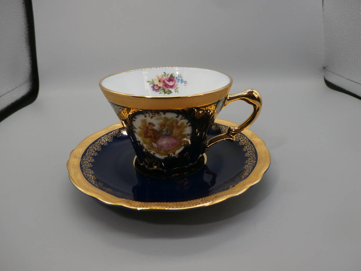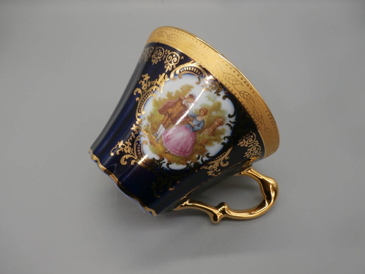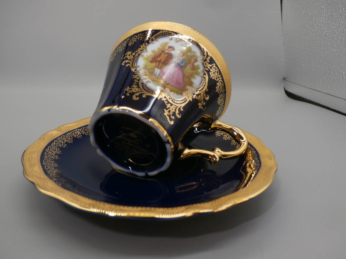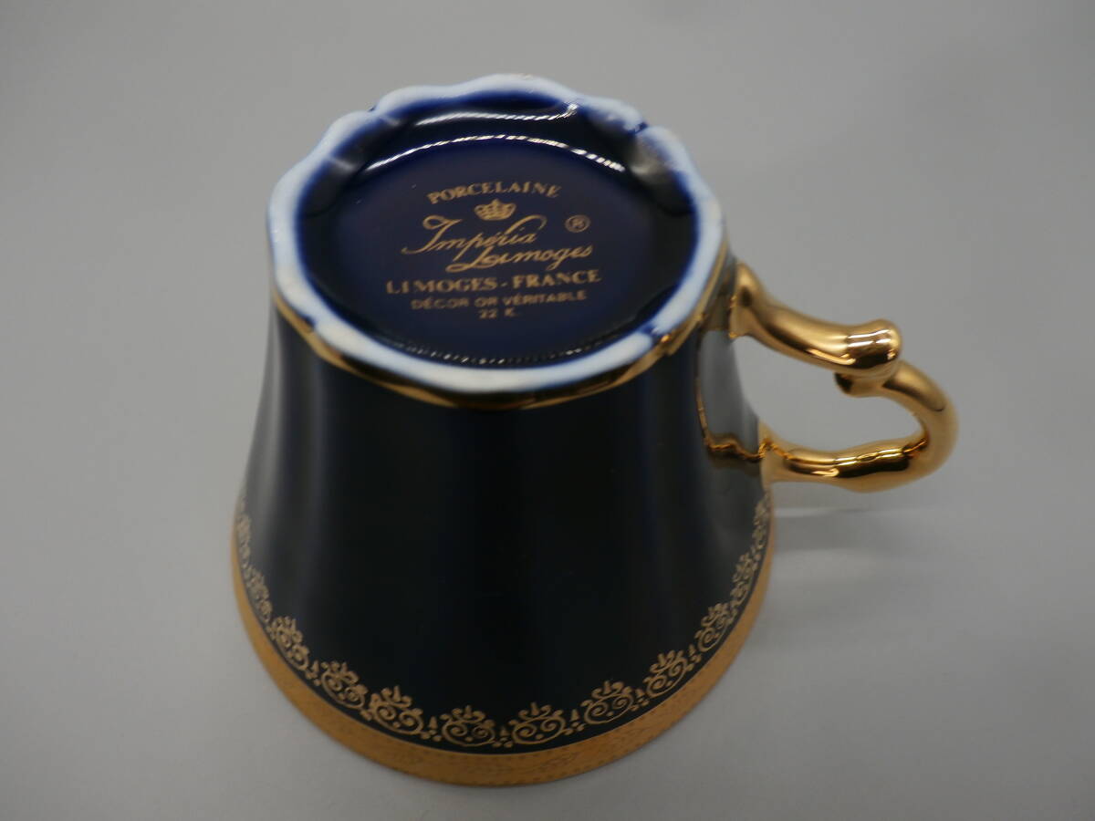 リモージュ デミタスカップ&ソーサー ネイビーブルー金彩デミタスカップ&ソーサー E 陶磁器  人物 画像2番 色彩見本画像入り 濃紺