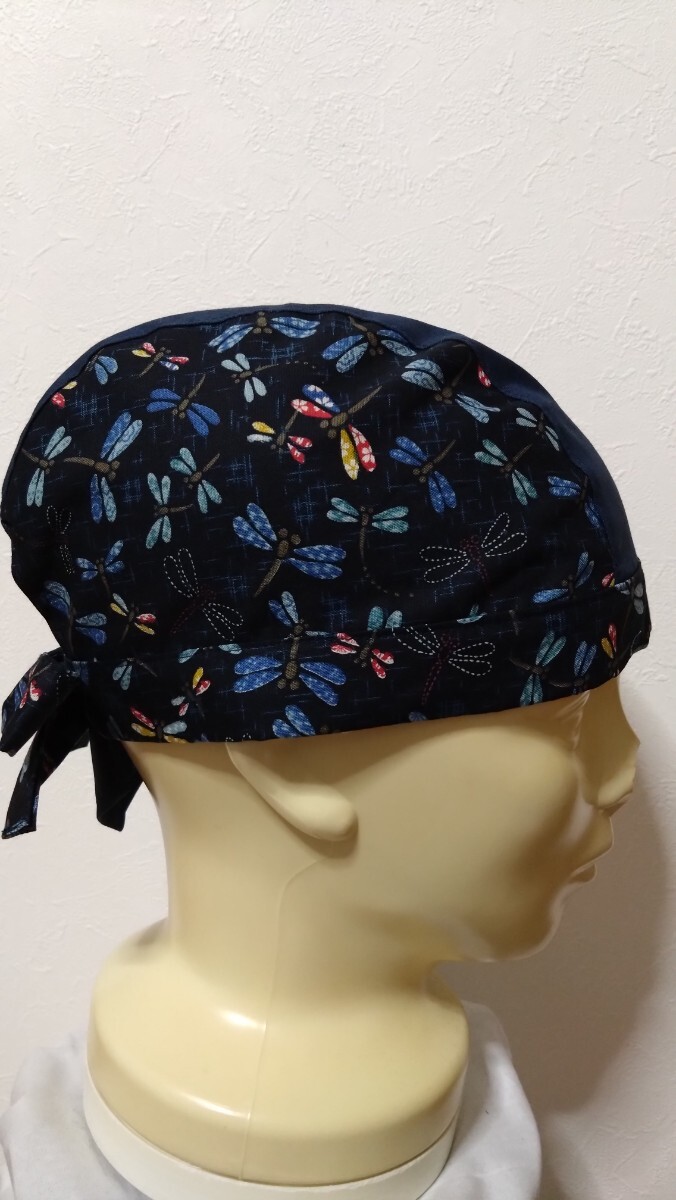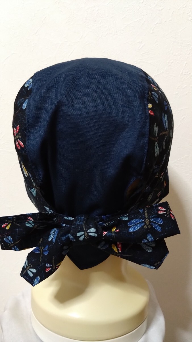 短★バンダナキャップ★ハンドメイド 和柄 とんぼ×無地 井絣 紺