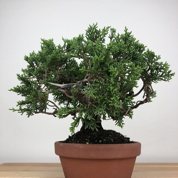 | ■植物ですので撮影時期や季節によって剪定などの手入れにより写真から変化がございます。撮影日をご確認のうえ、ご注文ください。 ■年に一度、冬頃にジン・シャリのお手入れをおこなっています。薬品の関係で黄色く変色しているようにみえる場合がありますが徐々に薄れていくので問題はありません。 【真柏盆栽】 シンパクの1番の特徴と言えば、短く締った紐状の葉と、わずかな水吸いでも生き抜くことができる強靱な幹枝です。自然界では積雪や強風などで押しつぶされ木部が露出し、朽ちて白骨化したものが見られます。枝の一部が白骨化したものを神(ジン)、幹の場合は舎利(シャリ)といいます。 |